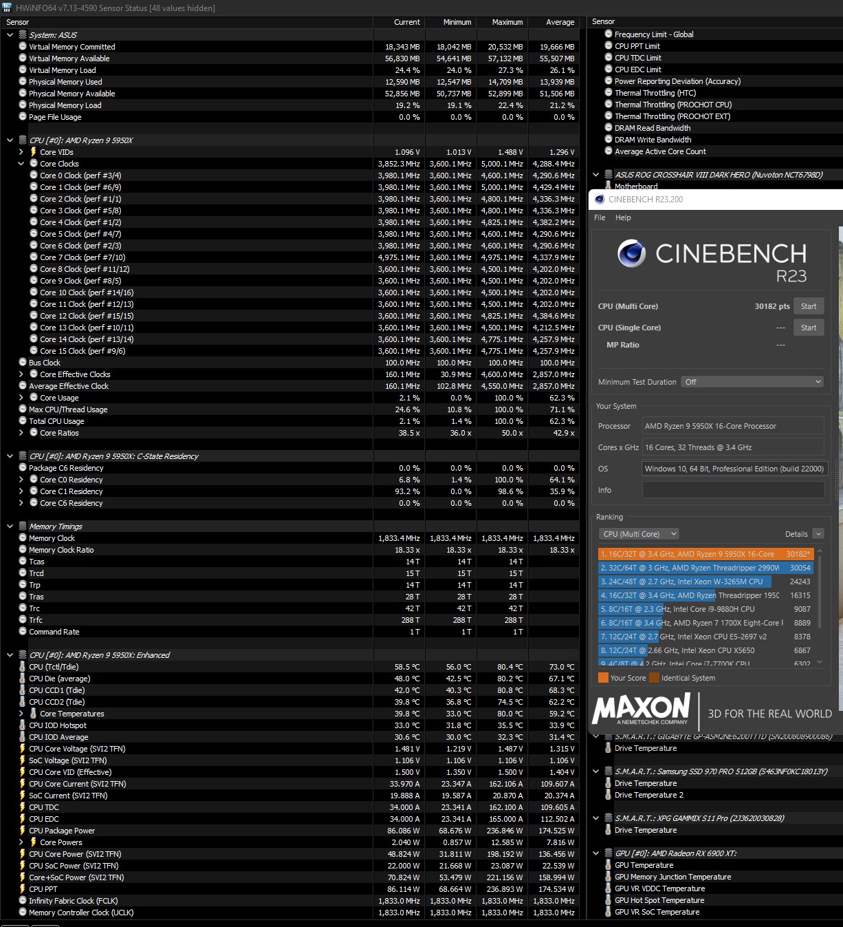 Я вот вижу например что повседневный фикс белоруса, для 5900x, присланный в теме, был что-то типа 23400. И он там типа гордился что это норм мультипоток. Я это вижу например и думаю ну если понимающий в фикс разгоне человек имеет 23400 для 5900, а у меня в стоке 25 ровно, на 5950, значит это норм. Чего придираться? Разгон двенадцатиядерника какраз может ровно настолько отличаться от стока 16 ядерного. И всё абсолютно логично. Абсолютно! Даже не подумаешь что тут что-то может быть не так. И плюс ко всему r23 то это ведь свежий бенч? Когда он вышел? Может реально эти кенты которые по 28к намеряли просто забыли лимиты в авто на мамке поставить, после своих дел с разгонами? Вот ты бы на это поставил? Я нет. 25к сток, зная прожорливость этих процессоров, выглядят вполне реалистично.