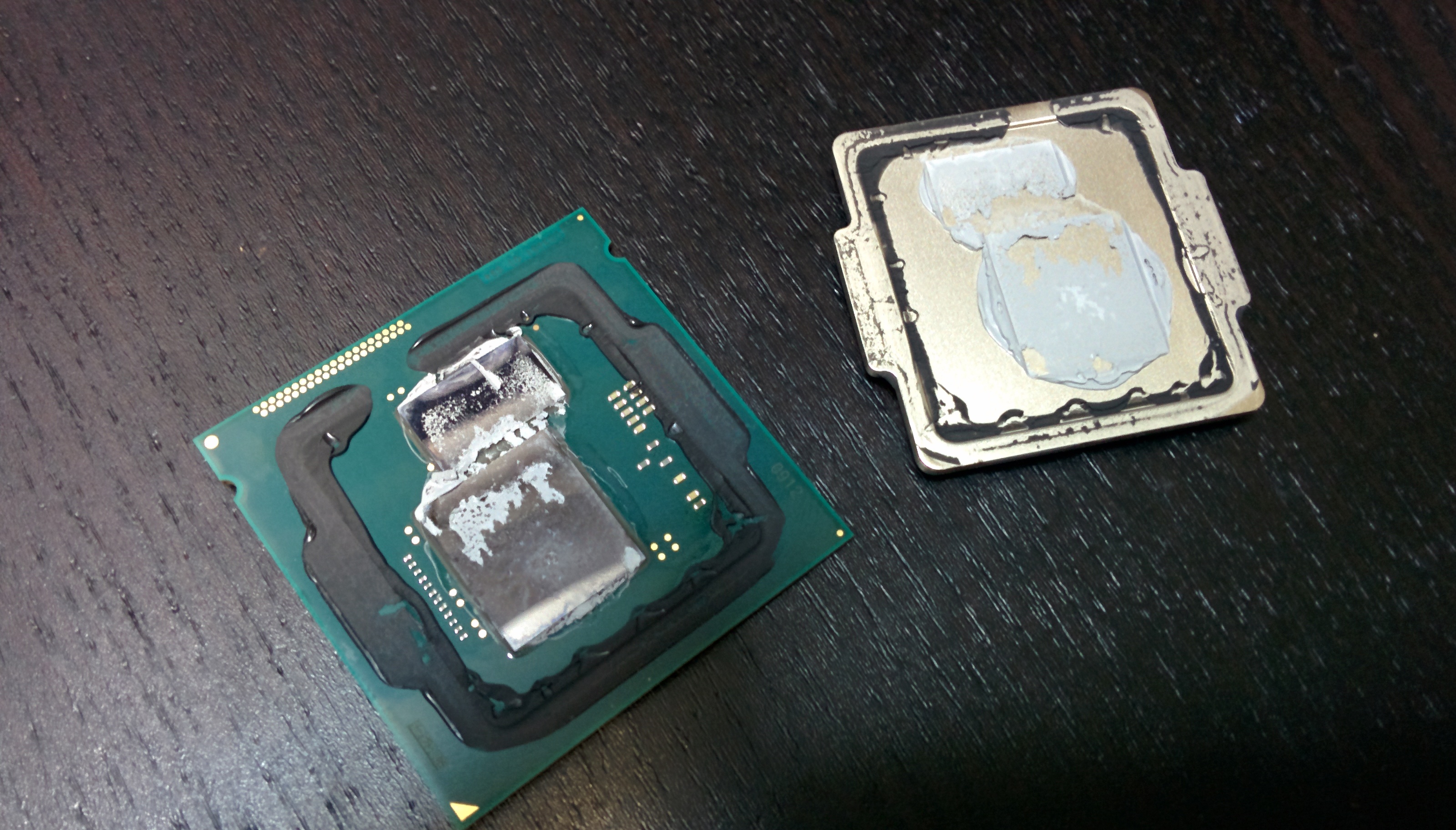 Это всё тот же ЖМ... Для того чтобы увидеть разницу между теплопроводностью 36, 77 и 80 Вт/м К надо проводить испытания на очень больших мощностях или с очень толстым слоем ЖМ Поймите уже, что нет никакой другой формулы ЖМ - это сочетание олова, индия (обязательно) и галлия с серебром (дополнительно). Единственный косвенный показатель о том что тот или иной ЖМ может быть лучше другого - это стабильная более высокая частота процессора и повышенное напряжение ядра при той же температуре. Поскольку мощность пропорциональна произведению частоты, ёмкости и квадрата напряжения. (ёмкость можно принять за константу и исключить из рассмотрения).