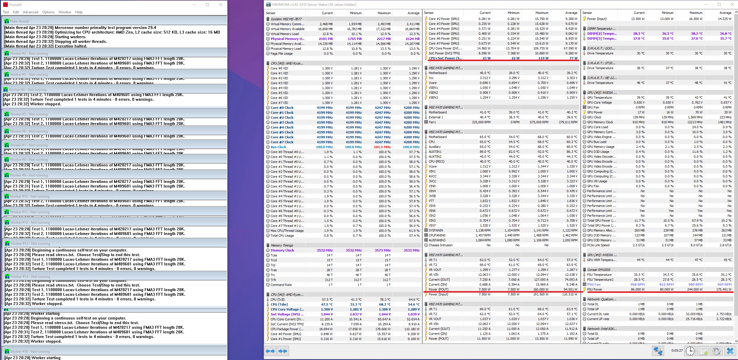 Что самое смешное - я температурный режим записывал еще на Hero 6. И за 20 минут никакого глюка на 4.3 ГГц/1.39 В. Вчера 4.2 ГГц в прайме 15 минут жарил при 1.2 В. Энергопотребление, которое показывает процессор, разнится с показаниями материнской платы и corsair link)