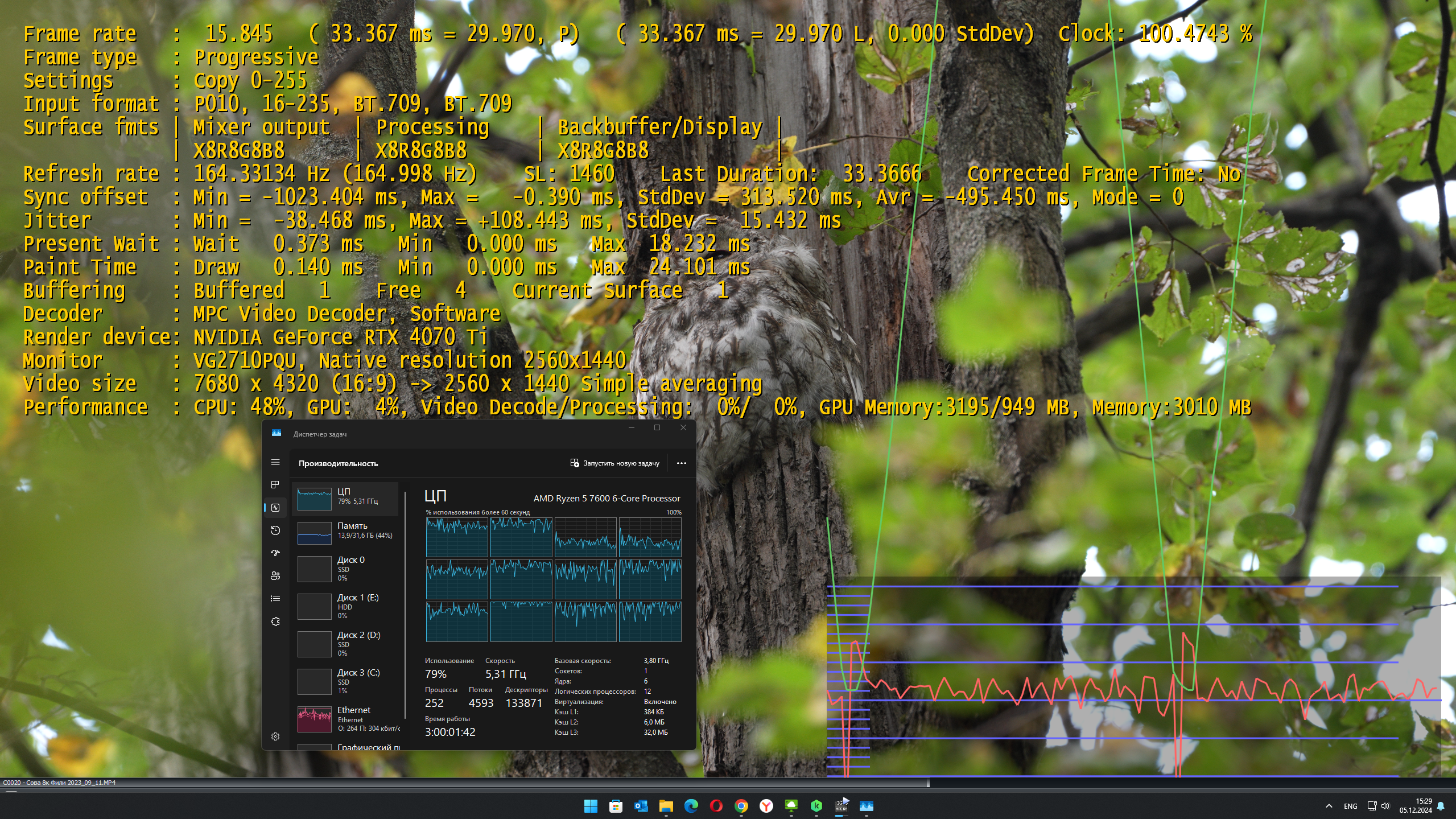 А чтобы сравнить. Я же тестировал на 12700K + DDR4 3600/16-16-16 именно на этой версии (тянул плавное воспроизведение). 285K тянет на 58% Total CPU Utility а 12600K + DDR4 2666/19-19-19 не осилил на 103.5% Total CPU Utility. Чтобы сравнить, на АМД надо использовать ту же версию плеера и те же настройки, тогда будет корректно (в идеале - ту же ОС, что и у меня во всех трех случаях - Windows 11 23H2).