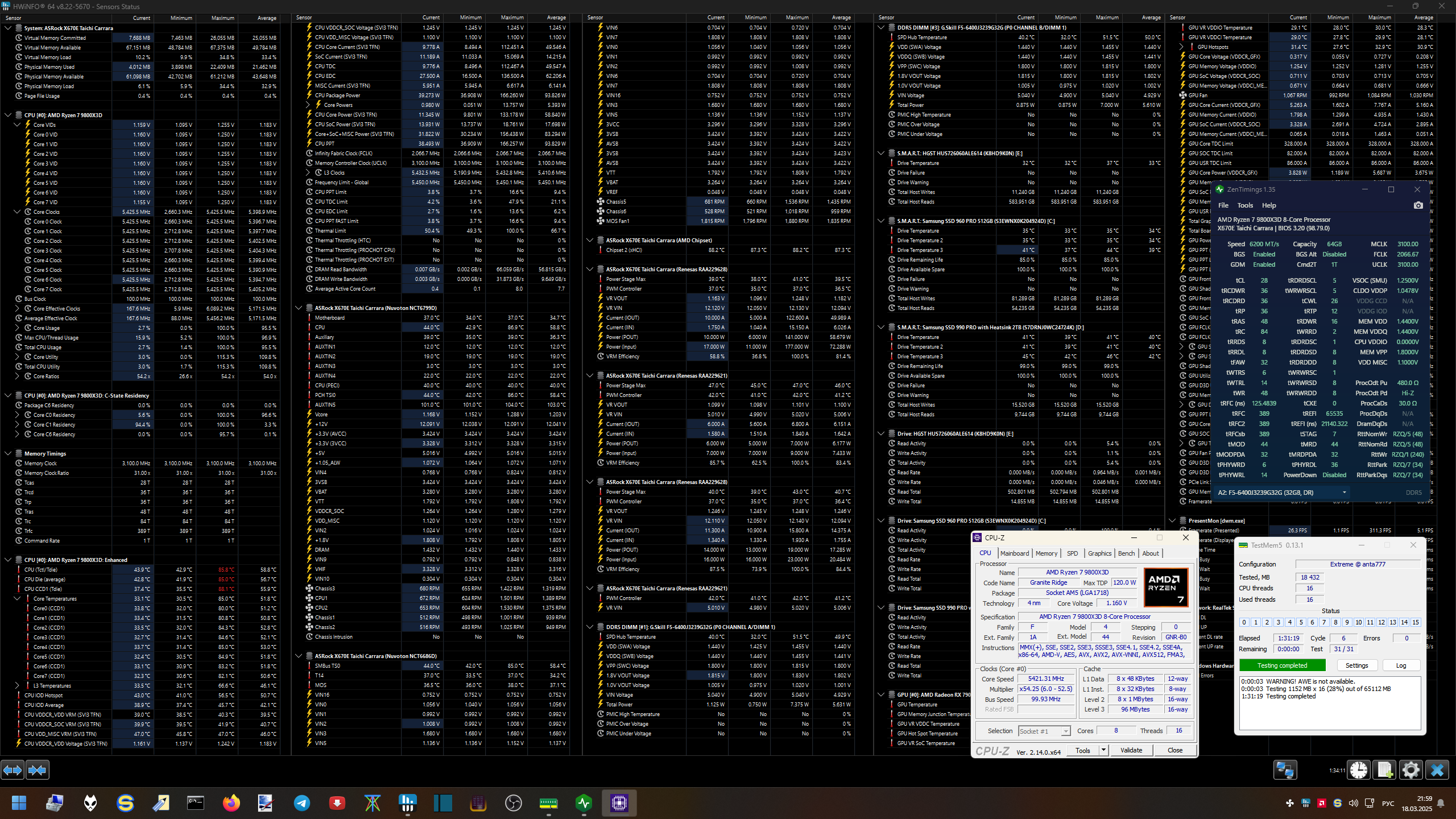 Только хотел написать что чё-то ничего не горит больше, как сразу написал челик о сдохщем 9800х3д. 15 дней вроде проработал, экспо включен всё остальное на авто.