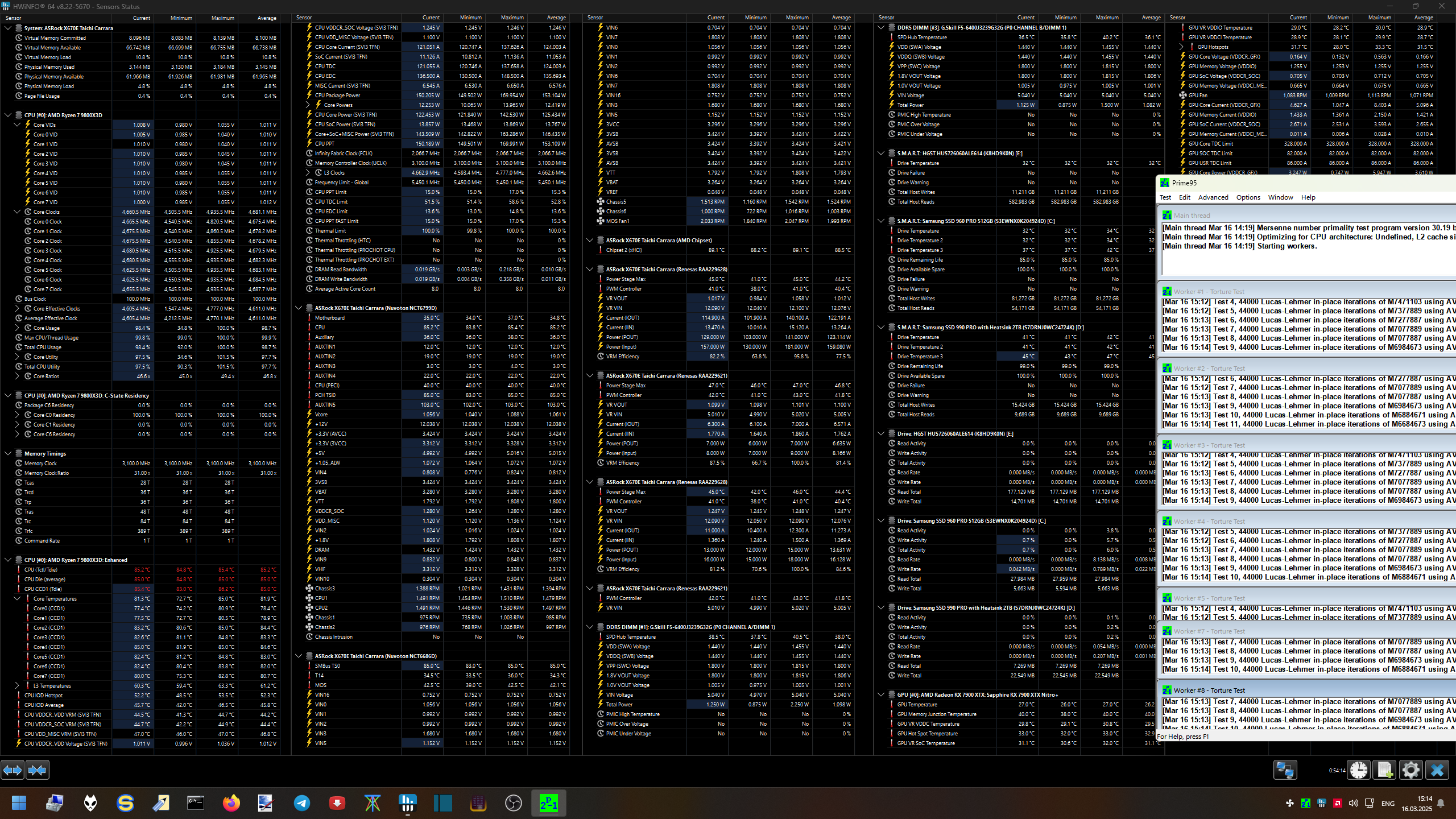 У меня приблизительно такая же картина была и на 7950х3д. Я к тому, что условные 1.25 - это уже +0.2в к дефолтным 1.05(по крайней мере на Зен5). Люди здесь часто накидывают Vsoc вплоть до 1.3, что бы стабилизировать условные 6400, но проблема зачастую не в недостатке напряжения на SOC. Вот о чем я:)