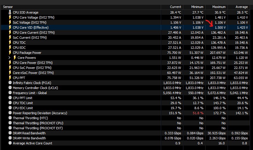 6eлоруС_80, вас понял, меня интересовал лишь текущий вольтаж и его безопасность для процессора. Писькомерством (линскы, праймы и т.д.) не занимаюсь в принципе - не тот возраст - поэтому СЖО мне ни к чему. Спасибо за вольтажи по чиплетам, если начнут сбоить, выставлю по вашим рекомендациям.