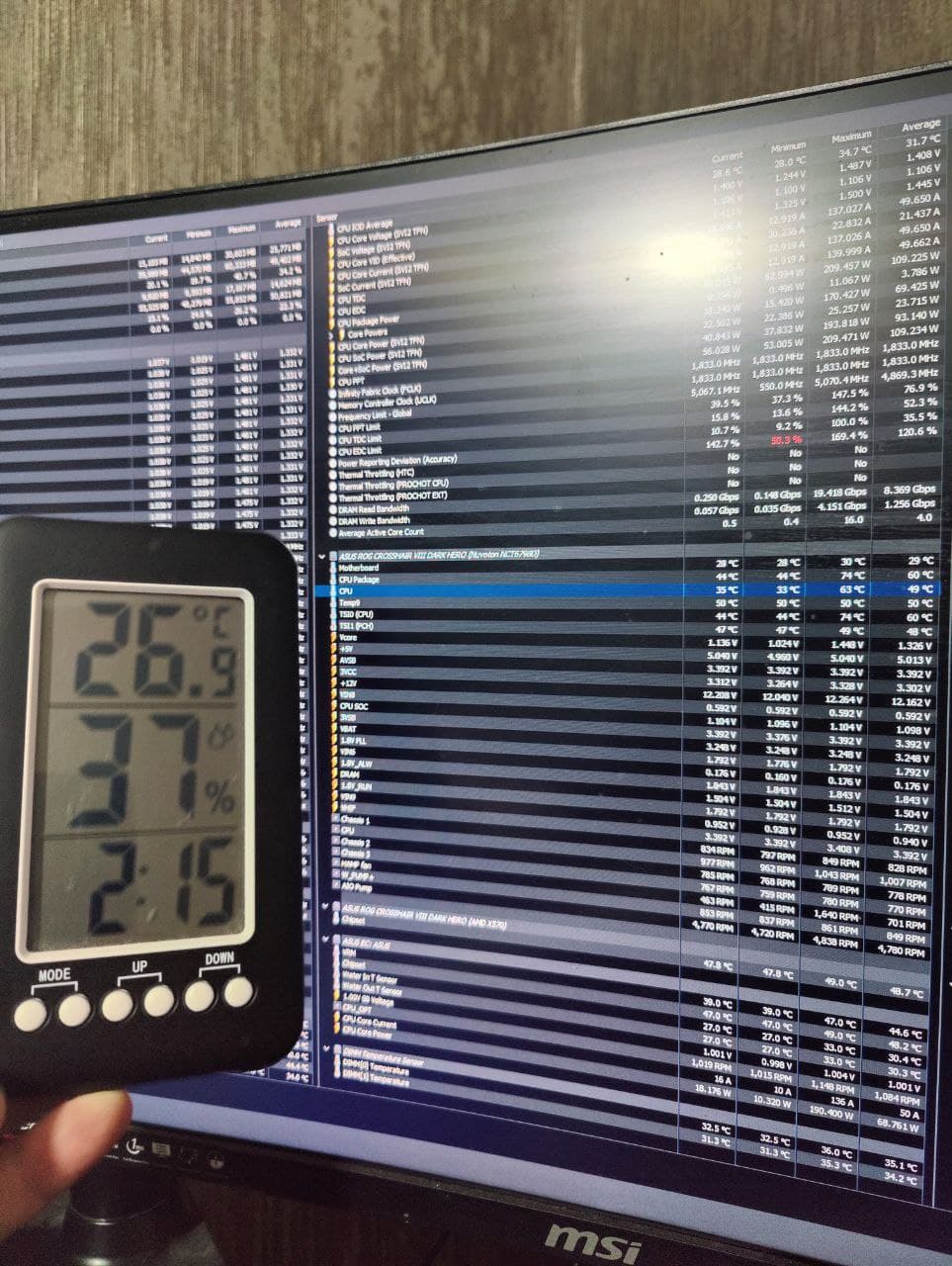 у себя такого не видел ни разу вот прямо сейчас - вода 27 (на фотке Water In\Water Out), этот датчик 35 - что очень похоже на правду (температура в помещении 26,9)