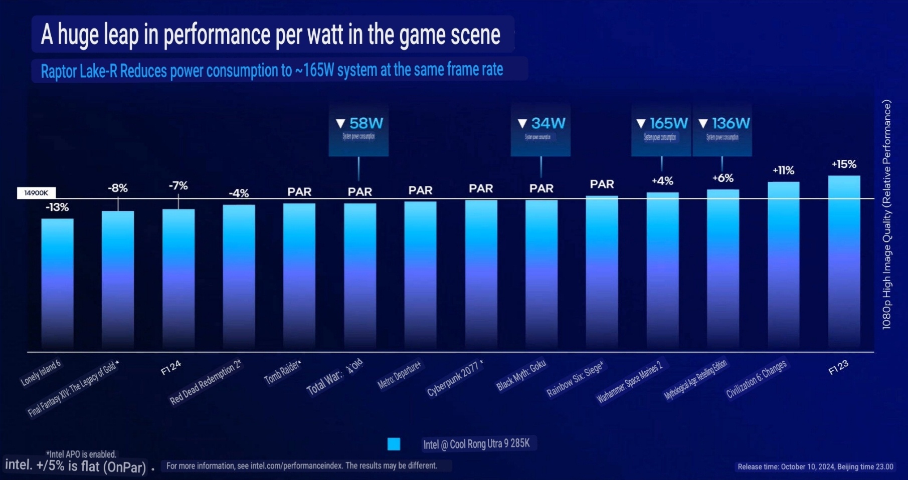 Возвращаясь к статье: https://videocardz.com/newz/intel-admit ... -in-gaming Если оба процессора (14900К и 285К) тестировали на DDR5 5600 (или 5200?), то 285К конечно мягко говоря не впечатляет. Но если 285К вытянет память 9000+ то есть вероятность что он обгонит 14900К (который может вытянуть по памяти не больше 8000 и только на Апексе). В целом мы видим там паритет в КП2077 и это конечно рука-лицо. Поэтому когда начнут продавать планки 9000-10000 то возможно мы получим небольшой прирост относительно 14900К при меньшем тепловыделении.