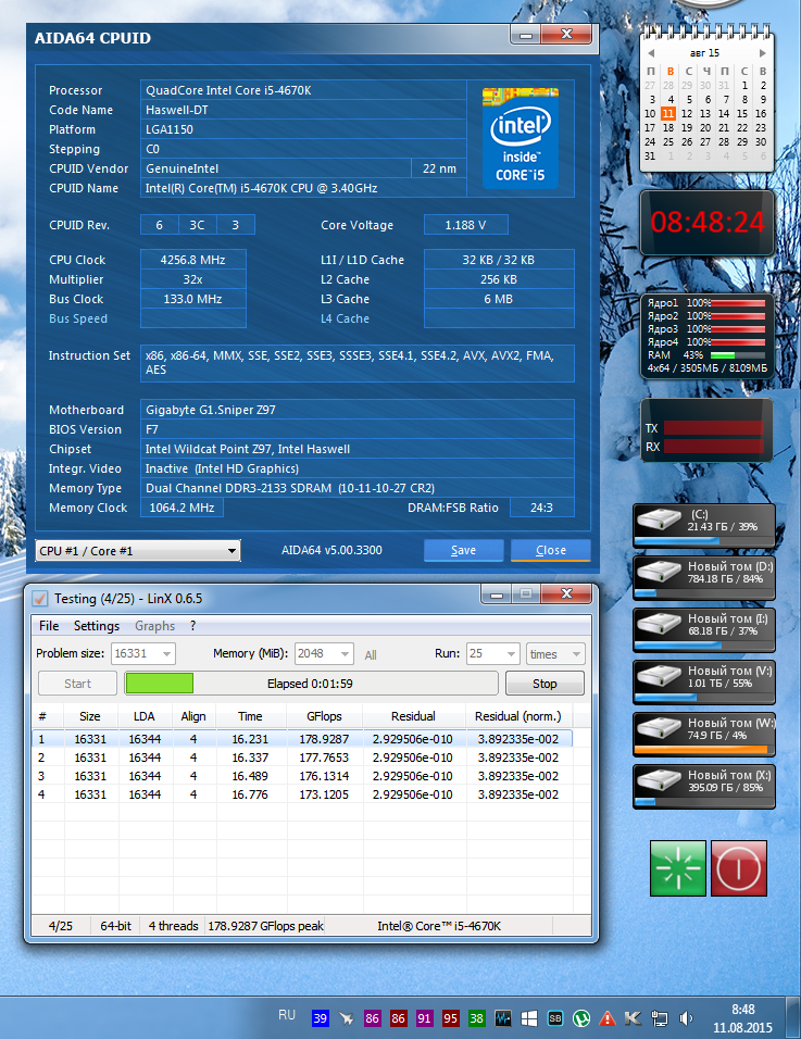 вот мой 4670К на частоте 4,1 набрал 207 Гигафлопа )))))))) прям чуть ли не i7 )))))))