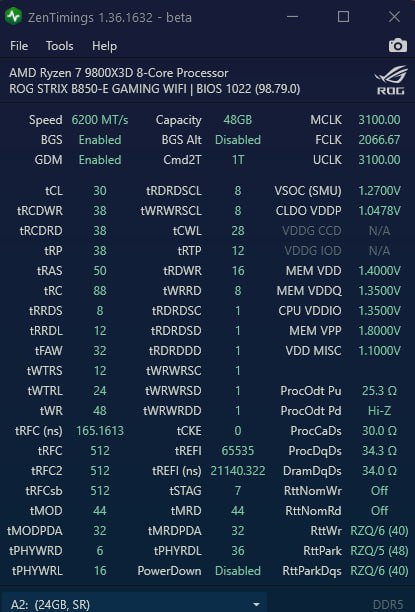 Вот так было при разгоне, сток сейчас не скину. Решил не медлить и вернул проц, чтобы исключить его, как возможного виновника, т.к. еще 7 дней не прошло с покупки, заказал новый, пока жду. Что интересно, у знакомого такая же мать и память, но 9950х3д и все ок.