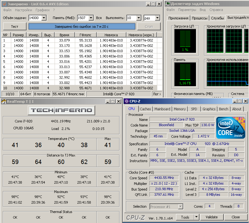 Добавлено спустя 8 минут 9 секунд: скрин! В простое железобетнные 4400 мгц, а в нагрузке плавает 4000, 4200, 4400 по ядрам. Где-то в биосе что-то отключить надо? Материнка p6t deluxe v2.