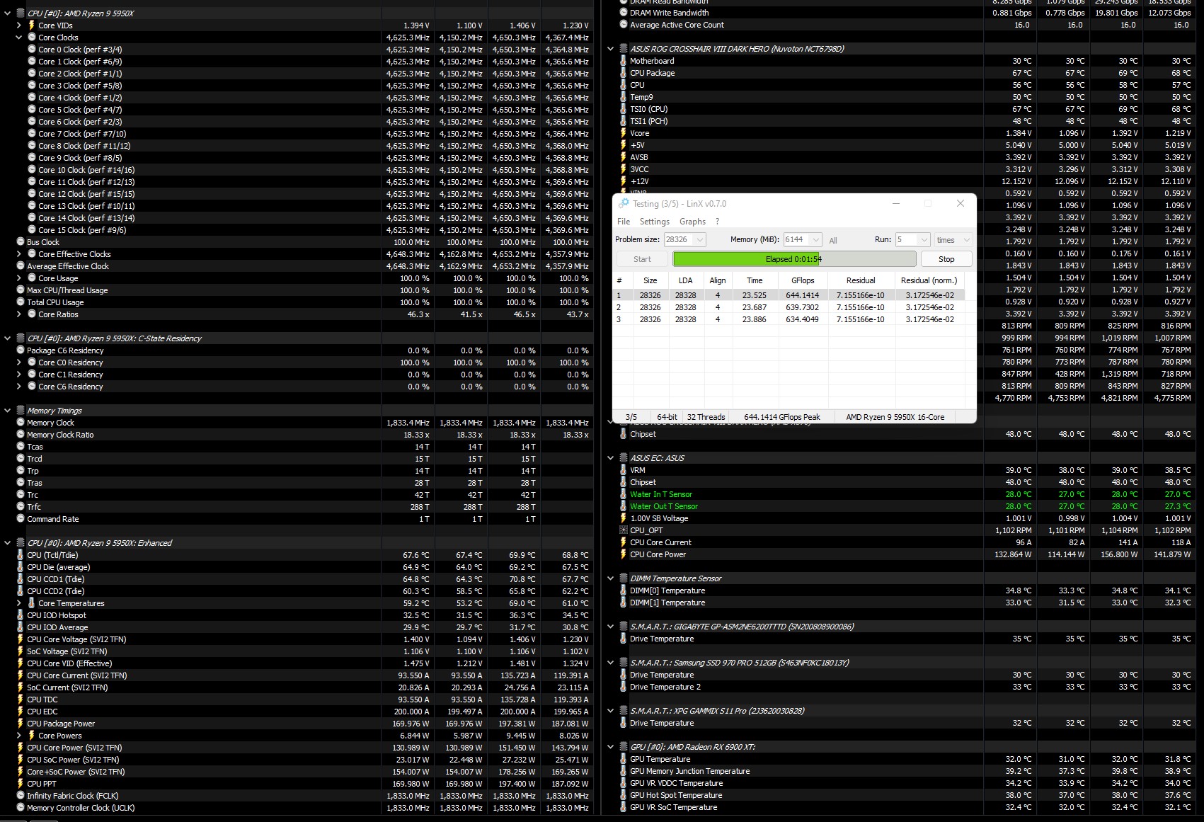 Делюсь болью и страданиями! В начале 2021 года купил я 5950X и материнку ASUS X570-I всё настроил спустя пару месяцев, радовался. Спустя пол года начались приколы, за неделю разок проскакивали ошибки WHEA Logger, по одной, потом через пару месяцев вообще критически ошибки WHEA Logger начали появляться и ребуты, причём под малыми нагрузками при просмотре видео или ютубчика, или при свёрнутой игре на паузе. После перепаковки водоблока на видюхе остались термопрокладки Gelid GP Ultimate, разобрал материнку, поменял термопрокладки на VRM, на обратной стороне VRM и на чипсете и вуаля, всё как рукой сняло. Напряжения CLDO VDDP, VDDG IOD, VDDG CCD получилось снизить до старых пределов. Какая связь между WHEA и охлаждением материнки я ХЗ. Но изначально начало помогать тупо обдув вокруг сокета 120мм вентилем. Теперь и без вентиля работает. Посмотреть бы на материнку в тепловизор.