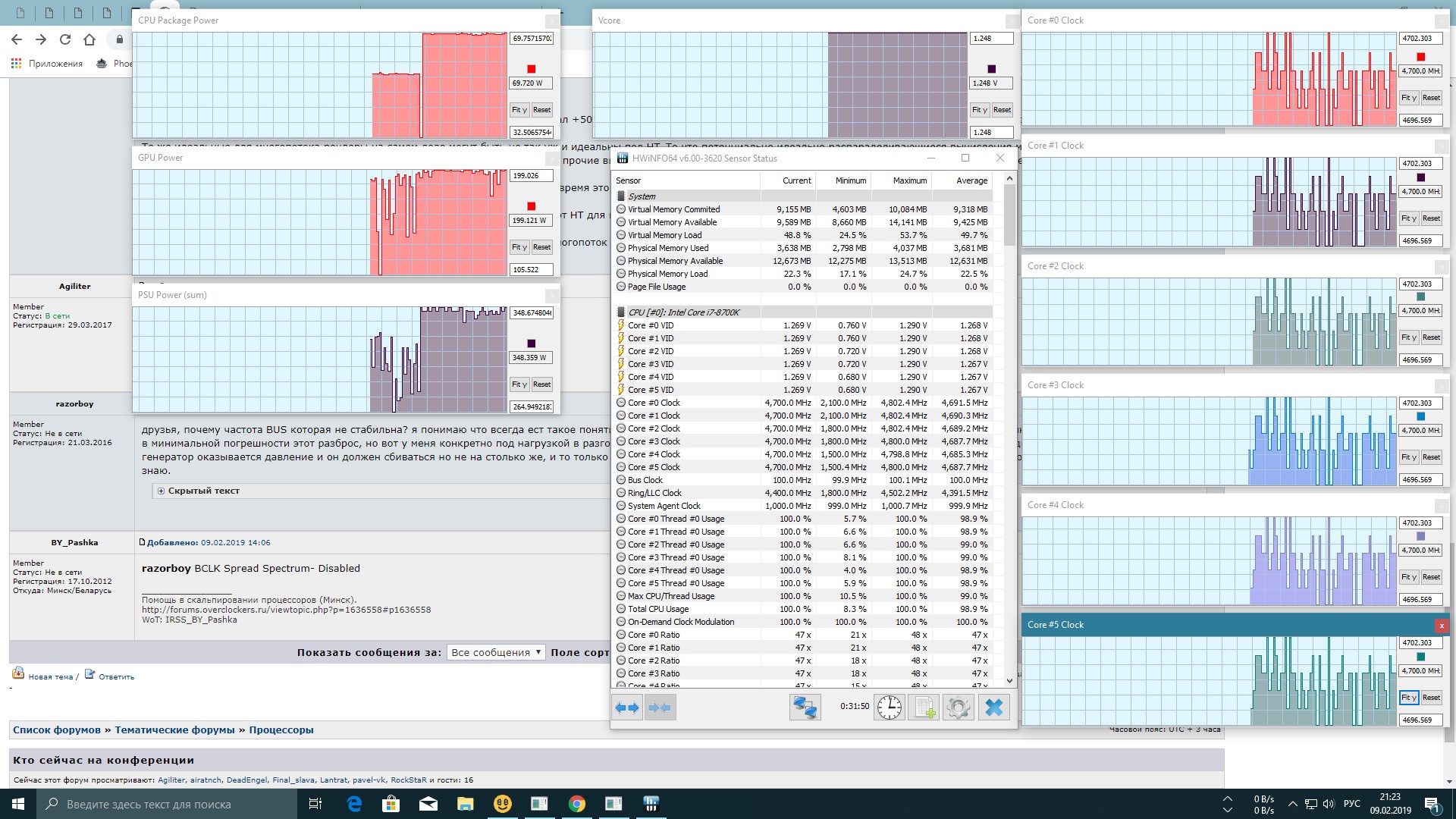 друзья, почему частота BUS которая не стабильна? я понимаю что всегда ест такое понятие как девиация частоты, но даже самые глупые устройства и на 5 ГГЦ умудряются синхронизироваться и держать в минимальной погрешности этот разброс, но вот у меня конкретно под нагрузкой в разгоне частоты от 4691-4703 хаотично на всех ядрах. конечно не спорю в переходных моментах на задающий генератор оказывается давление и он должен сбиваться но не на столько же, и то только в момент смены множителя. как его стабилизировать в биосе куча настроек по этому поводу а подробностей не знаю.