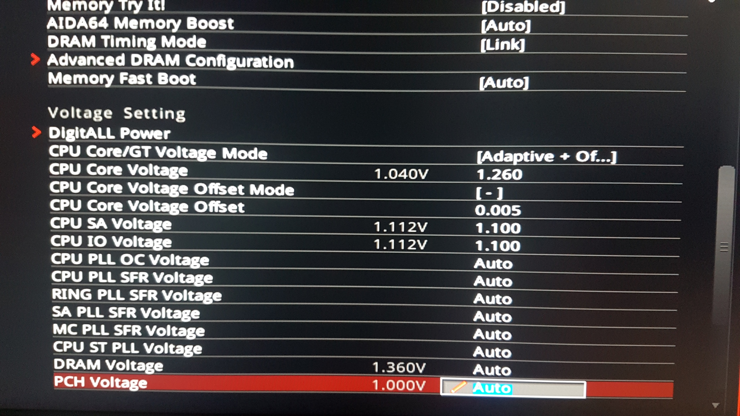 Добрый вечер! Процессор 8700k, мать MSI Z370 Gaming Pro Carbon AC. Хочу разогнать проц до 4.7 ГГц с динамической частотой с множителем 8-47 и динамическим вольтажом. Проц скальпирован. Пробовал ставить настройки вольтажа Adaptive + Offset, но мать задирает напряжение выше того, что я указал. По идее у меня он заводился стабильно на 1.26, но из-за того, что я не ставил LLC под нагрузкой крашился в синий экран в играх с ошибкой kernel_mode_trap, как-то так. Но на 1.28 В такого не наблюдал, но почитав форумы и посмотрев видео, думаю, для 4.7 ГГц 1.28 В это много. У кого есть такая же мать или кто понимает, не могли бы пожалуйста помочь сделать как я выше описал?