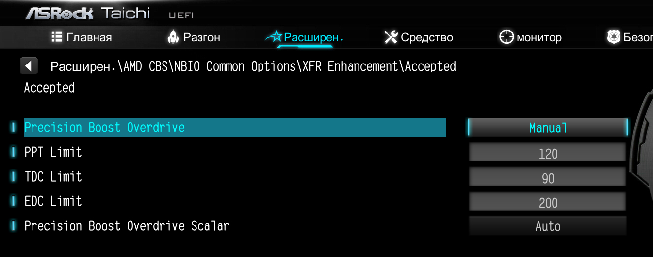 Странно в общем, сейчас пытался, при фиксированных частотах не даёт изменить эти 1000/540/540, они так и остаются всегда, сбросил на автобуст, без проблем изменил. Кстати пбо дублируется в биосе, если что то не удается изменить, попробуйте ещё там поковырять)