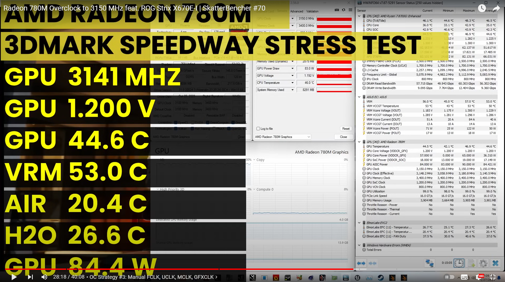 По факту ручного фикса теперь нет, есть только выставление цели для pbo, который динамически управляет частотой встройки. В 3д марк при vgpu=1.2 и фиксе 3150 средняя частота 3141мгц. Максимально можно выставить vgpu=1.25 и в игровой нагрузке потянет около 3300мгц, но разница с auto pbo 3%. И это у него ЕК вода за 1000+ енотов и темпа в комнате 20 град. Поэтому на среднем воздухе, имхо, по темпам все будет +- так же, как у него в ООСТ, который создает нагрузку в 1.5 раза больше игровой. Не удивлюсь, если 760M в разгоне будет сильно наступать на пятки 780M. Больше всего бустит встройку разгон памяти, между 6800 1:2 и 7800 1:2 15% разницы и это без оптимизации таймингов.