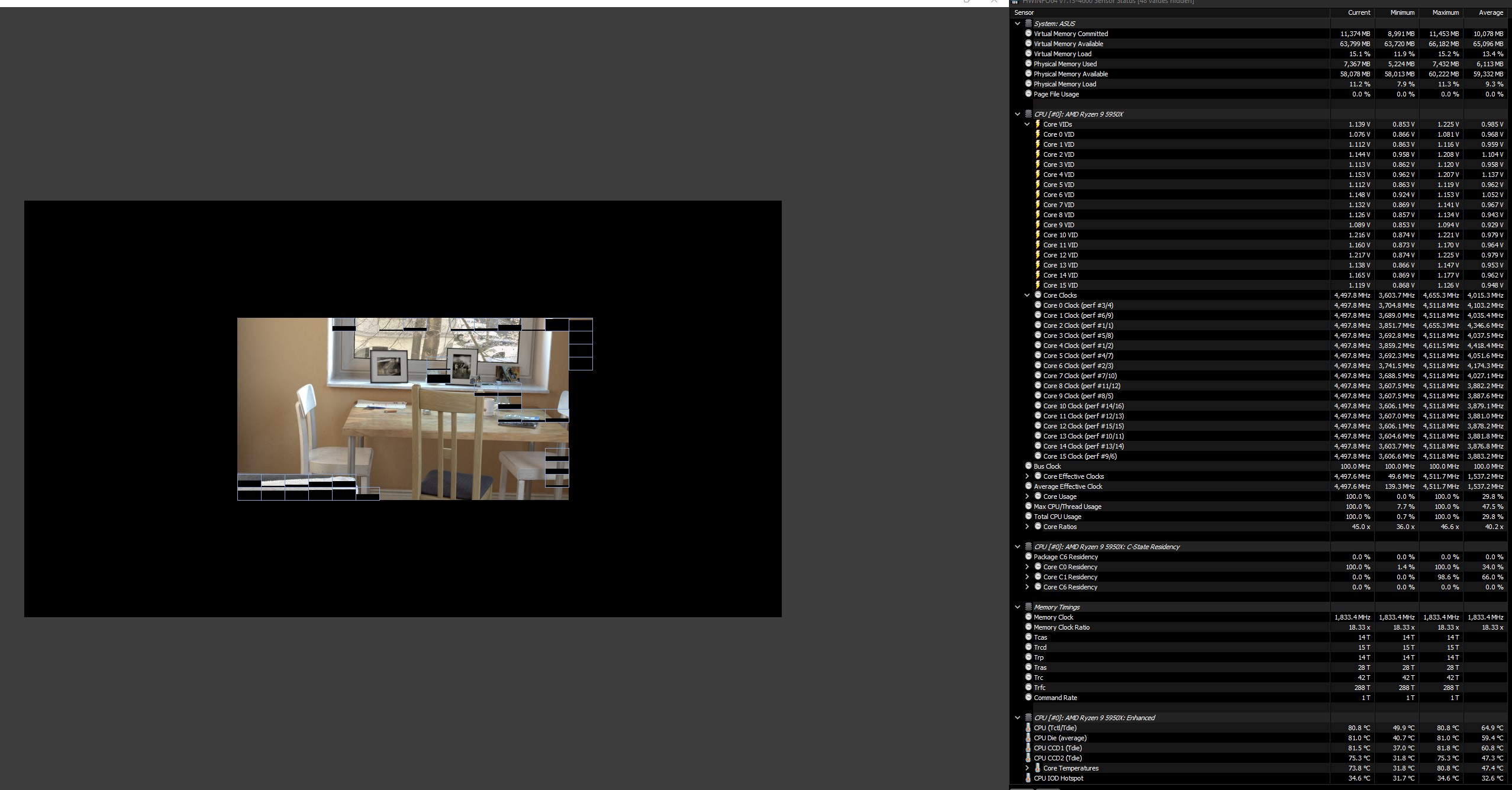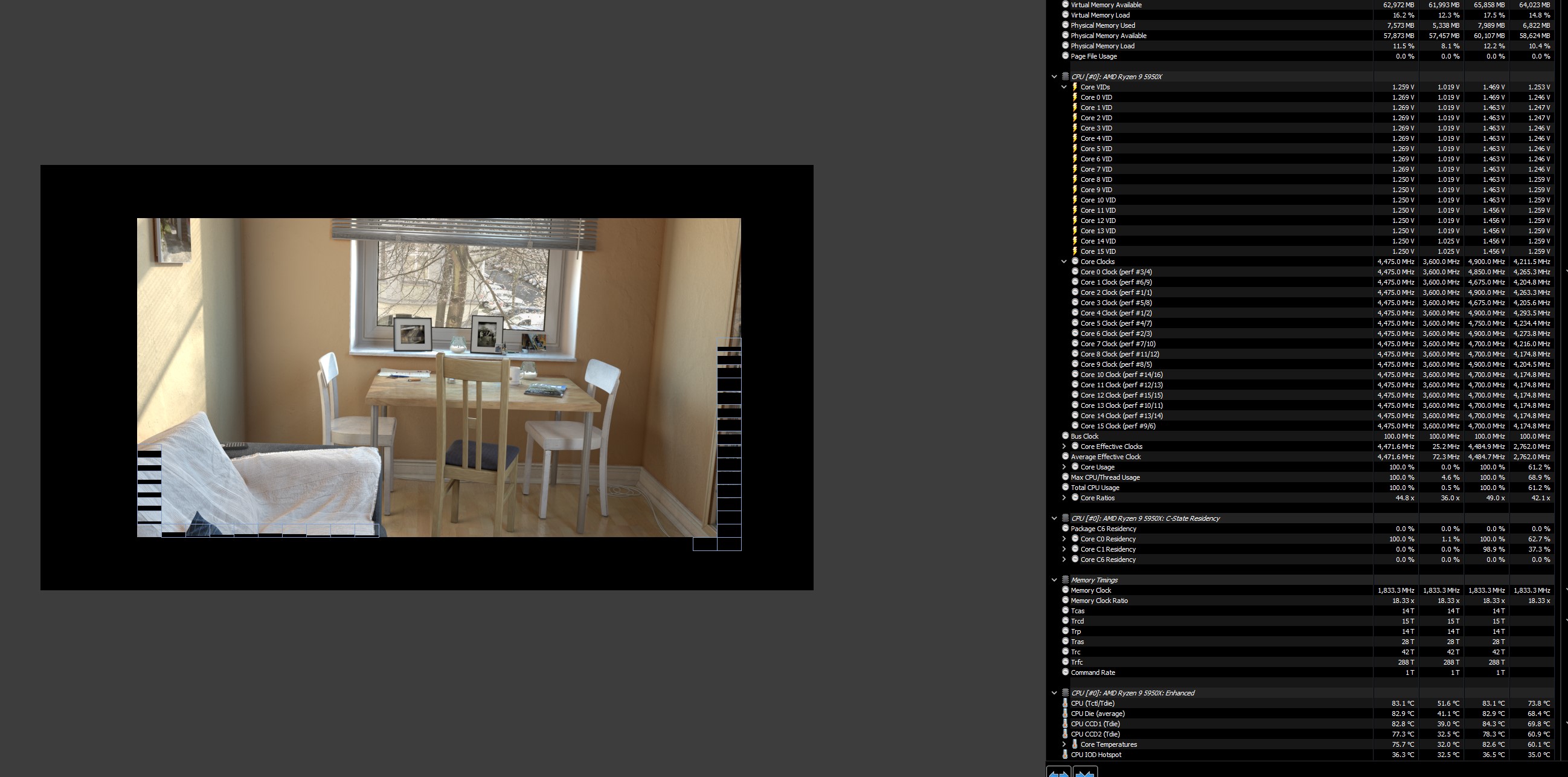Главный прикол в том что после всех даунвольтов, 5950 на 16 ядрах, с 15 процентным разгоном, укладывается в 125w в стресс тестах, как Y-Cruncher. Где пиковые значения не превышают 135w. Т.е. это зарегистрированный максимум, за несколько часов теста. Практически так-же как ваш 5800. CO сила! Но вторичные напряжения тоже неплохо ужались.