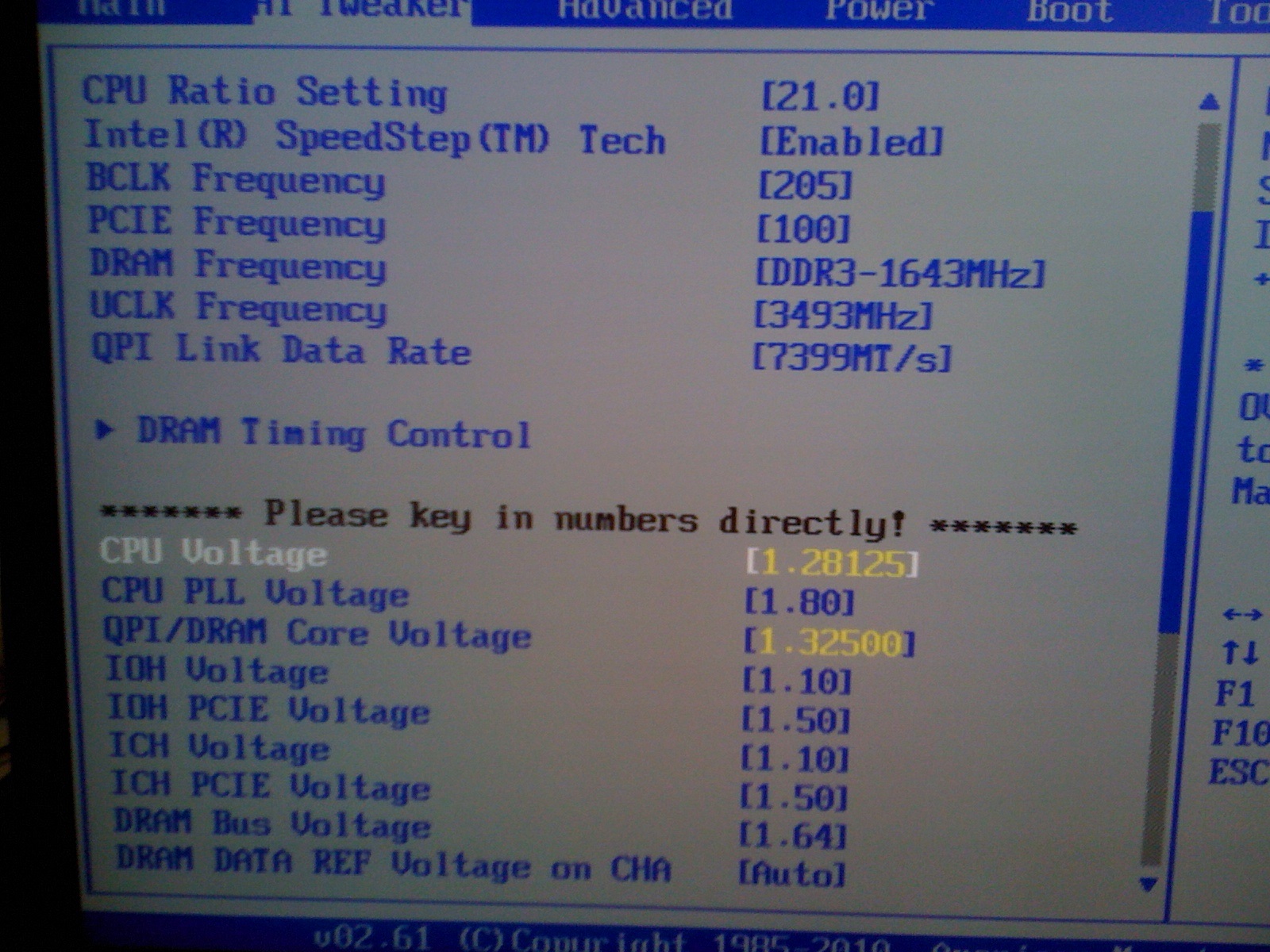 Q: От каких напряжений может деградировать процессор ? A: Для core i7 не рекомендуется использовать Vcore выше 1.55 в (для Linfield, Gulftown 1.4), Vddr нельзя поднимать выше 1.65в. Для uncore не рекомендуется поднимать напряжение выше 1.35 (Linfield, Gulftown 1.4), CPU PLL ограничено пределом 1.88 вольта. Пренебрежение этими рекомендациями может привести к деградации процессора.