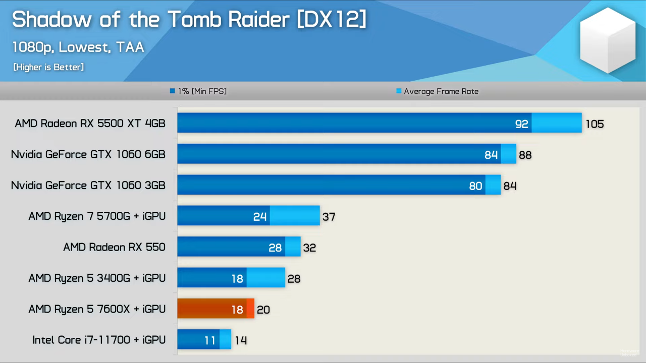 Вы удивитесь количеству людей которые играют на встройках...интел во всё подряд. Тут даже 2 кусочка RDNA2 уже что-то приемлемое показывают. Полноценные 7000G или мобильные чипы это более чем игровые варианты. Nvidia лично забивает гвозди в крышку базовых карт при 100$ за 1030 и 160$ за 1630. За 160$ особенно смешно, чуть накинул и уже 6500xt.
