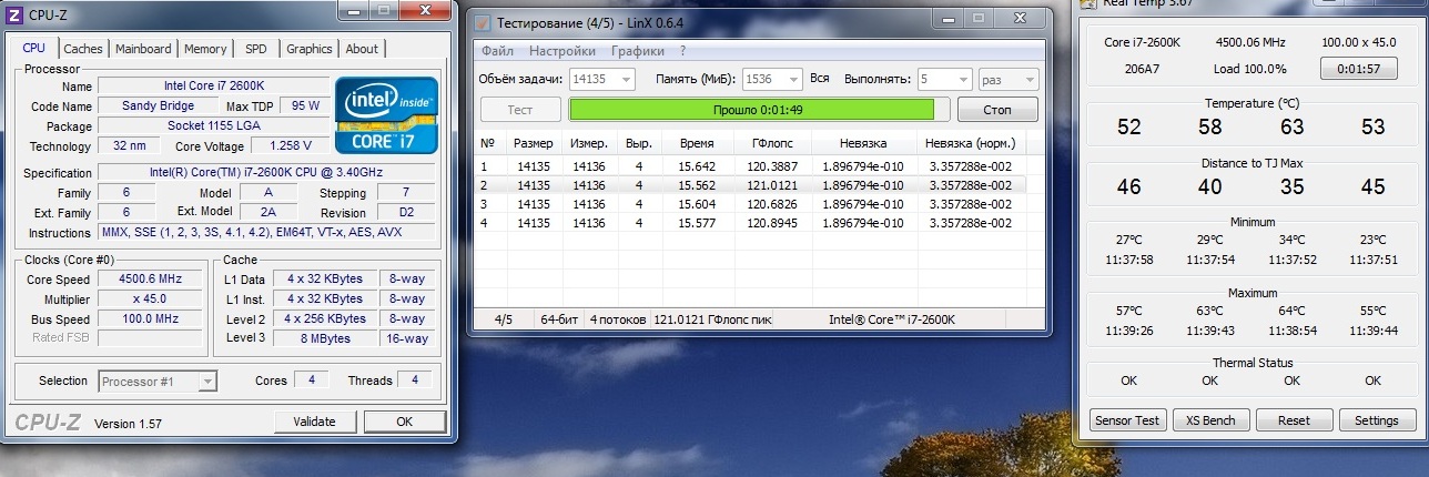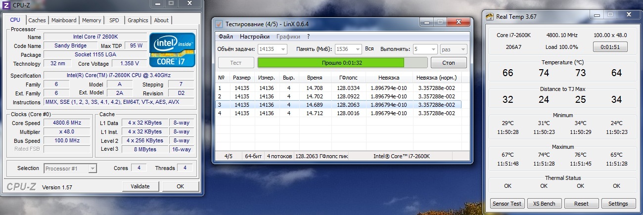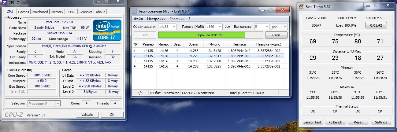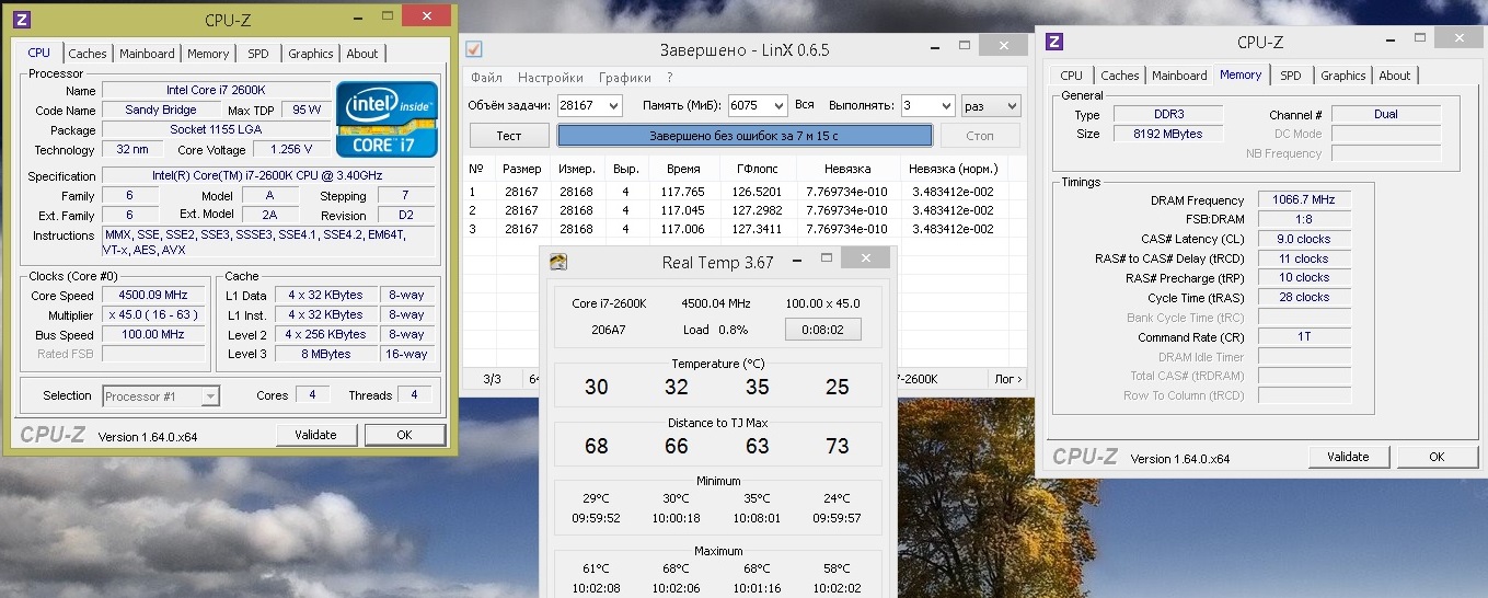 Запущено ведь не только LinX, но и сама ОС со своими приблудами; CPU-Z не использую; она не сохраняет визуально MIN_MAX после теста, в отличии от HWiNFO (в ней видно побольше всего).