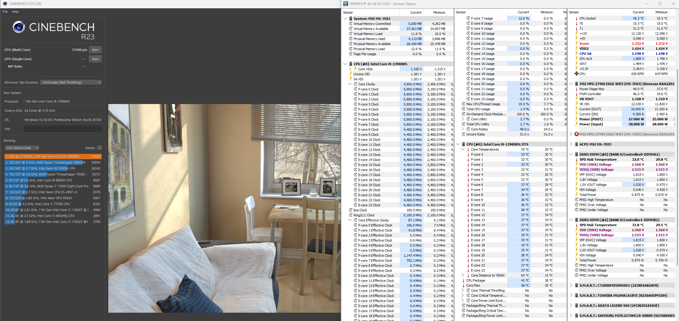А на температуры в простое какие факторы влияют? Мат плата одна и таже 13600KF в простое ниже 38 градусов не опускался 14900K в простое был 31-33 градуса 14900KS ниже 37 градусов не опускается, потребление 7-10w Менялись ток версии Windows, KS работает на тех же частотах что и K Просто смотрю у murkok5, скрины он выше скидывал на 14900KS минимальная тем-ра 31 градус