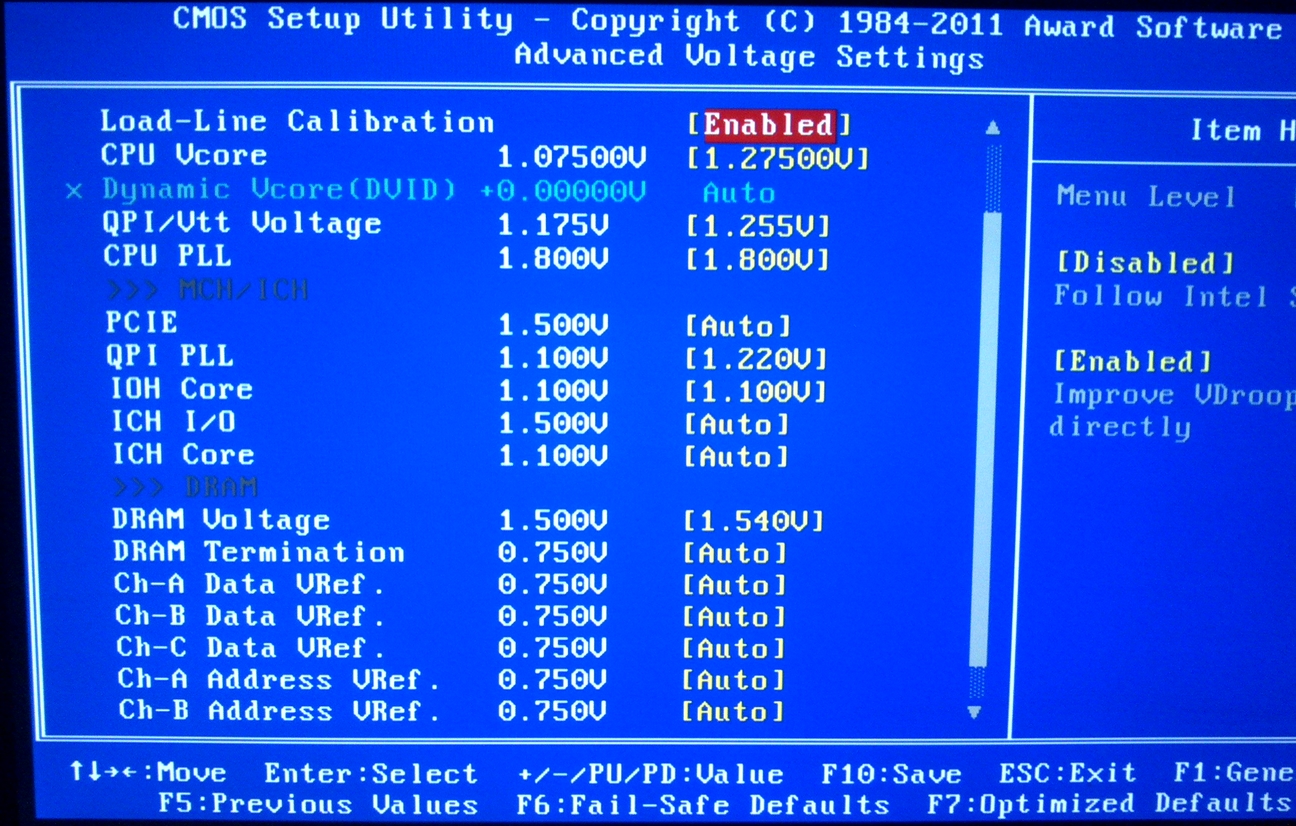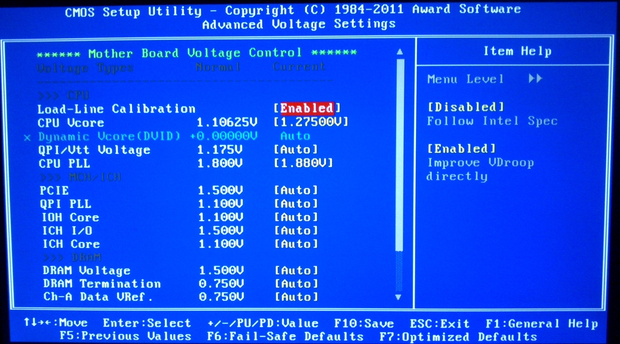 Q: От каких напряжений может деградировать процессор ? A: Для core i7 не рекомендуется использовать Vcore выше 1.55 в (для Linfield, Gulftown 1.4), Vddr нельзя поднимать выше 1.65в. Для uncore не рекомендуется поднимать напряжение выше 1.35 (Linfield, Gulftown 1.4), CPU PLL ограничено пределом 1.88 вольта. Пренебрежение этими рекомендациями может привести к деградации процессора.