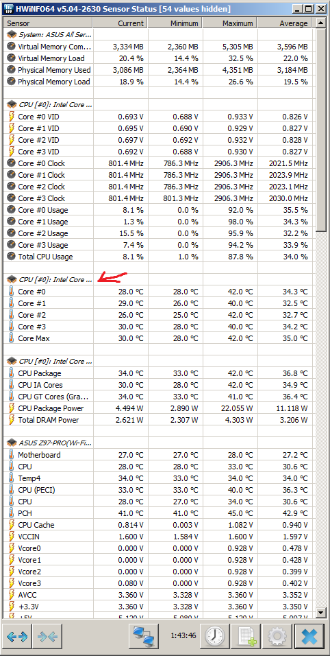 это всё конечно замечательно Но у меня мой нувотон вообще температуру ядер не показывает как бы, так что мы о разных вещах говорим А всё что он показывает продублировано и точно соответствует другим датчикам ну все, абсолютно все показания правильные: