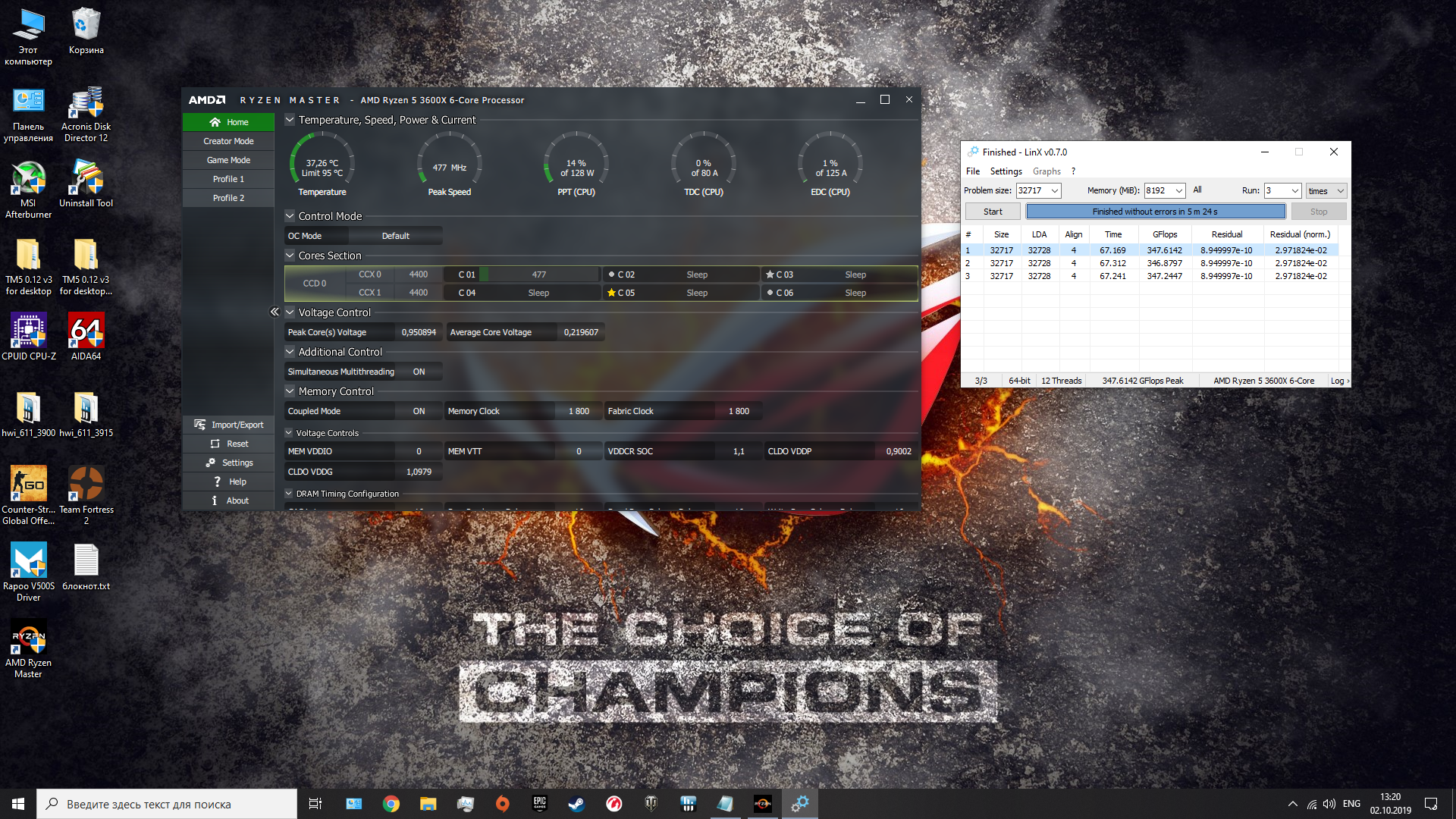 Подскажите как этот результат. Проц полностью в стоке, память на 3600 cl16 температура по RM не выше 85 при Линкс. При запущенном мониторинге от Аида результат почему то ниже.