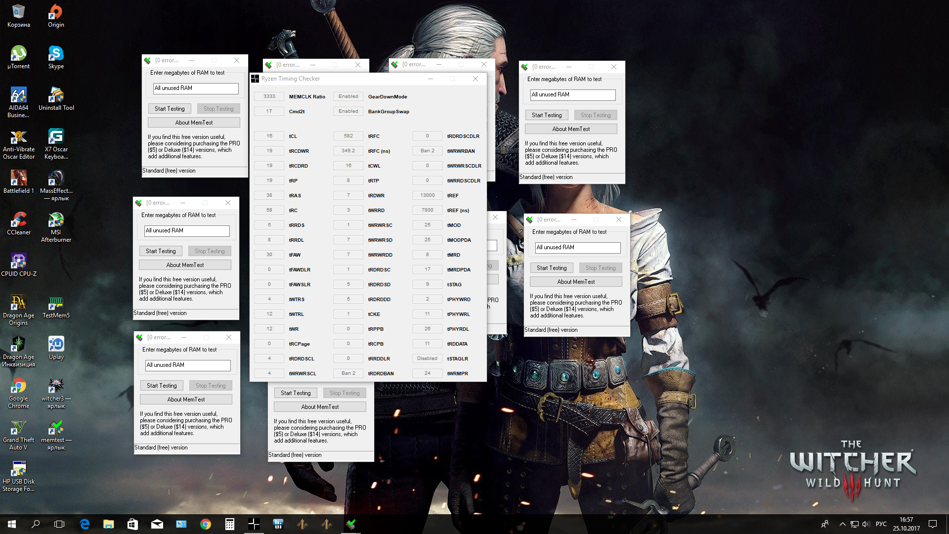 Что делалось,настройки 99% калькулятора 98v, rtt пробовал все с прокодом 60,напряжение 1.375 = 0.6875,cad bus 30 30 40 60,после 60% теста в 12 окон,1 ошибка и через время комп уходит на радостную перезагрузку с синим экраном,вчера на 97v калькуляторе данная бяка происходила практически сразу после запуска теста, как бы прогресс есть,но ... ,все тестировалось на разогнанном процессоре в подписи,а теперь вопрос уважаемым Знатокам ,куда копать ? На 3200 частоте +калькулятор комп стабилен во всем. P.S.Во время вчерашних тестов калькулятор 97v ,напряжение ставил от 1.375 - 1.415v ,данная процедура не влияла на завал теста в самом начале и bsod.