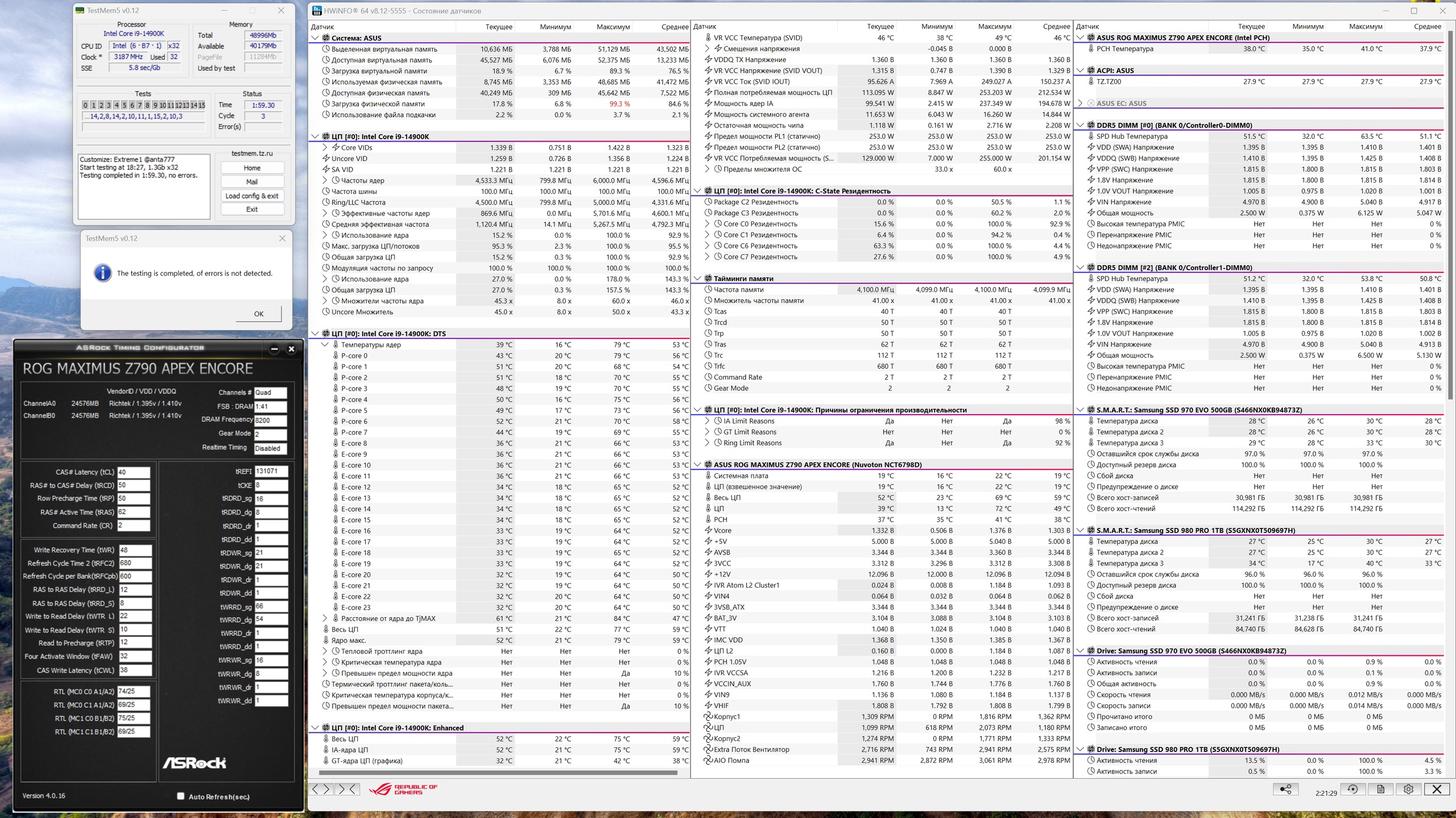 Вчера пока был выходной погонял Win 10 и Win 11 23H/24H На Win 10 мой 14900KS запустился на дефолтных настройках биоса, максимальный сток. Нет вылетов и синих экранов. После настройки биоса результаты R23 Win 10 - 39800 Win 11 23H2 - 40200 Win 11 24H2 (Build 26100.1742) 40400 Win 11 24H2 cо всеми обновлениями последними 30800 По итогу на моем ПК да и судя по отзывам других Build 26100.1742 неплохая версия получилась, на ней остановился и отключил пока обновления. Вопрос почему на win 10 проц работает в стоке нормально без синих экранов, а как только ставишь win11 так при установке синьки лезут, пока в ручную частоту не ограничишь. И еще встал вопрос по плате, планирую собрать второй пк, моя мать и опера туда переедет, что для себя сейчас можно взять топового на Z790? Пока мысли о APEX