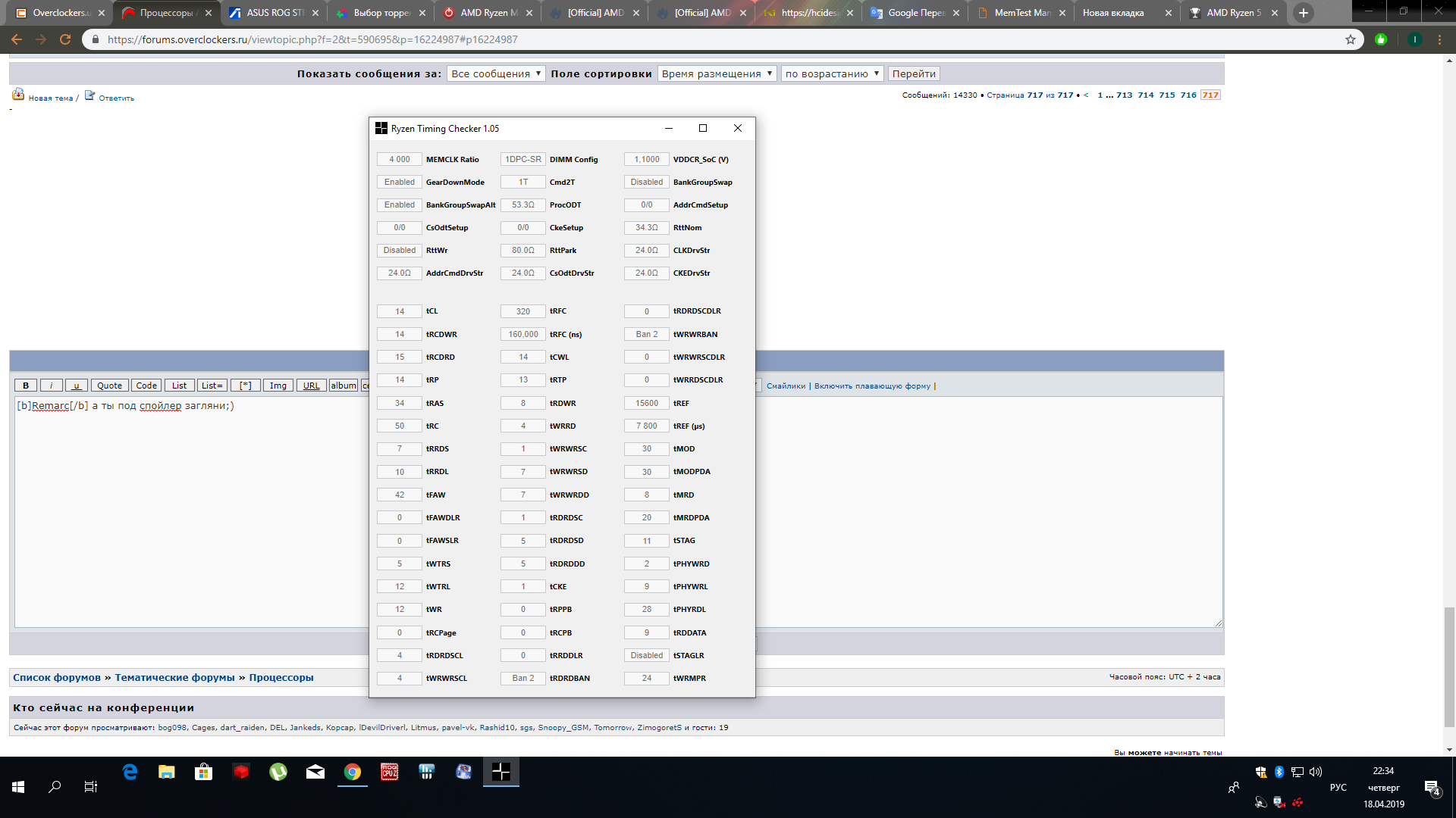 - Гонится ли лучше ОЗУ на ZEN+? - Нет, контроллер памяти идентичен прошлому поколению, даже имеет идентичные прошивки. Единственно улучшение - более низкая потребность в SOC voltage. Статистика разгона памяти : 3400 МГц - 12,5% образцов , 3466 МГц - 25,0% образцов ,3533 МГц - 62,5% образцов при условии использования памяти на чипах Samsung b-die.