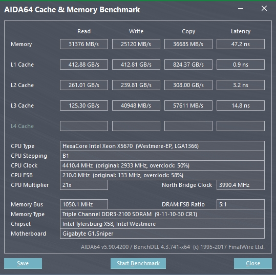 У меня на 1366 при частоте 1866 24 чтение было в 2 канальном, и на 2011 при 1866 чето около 28 в 2 канальном. На 2011 и частоте 2133 уже 31500 и частоте 2400 34 выдает. У друга купил эту платформу у него 4х8 2400 выдавало 66.
