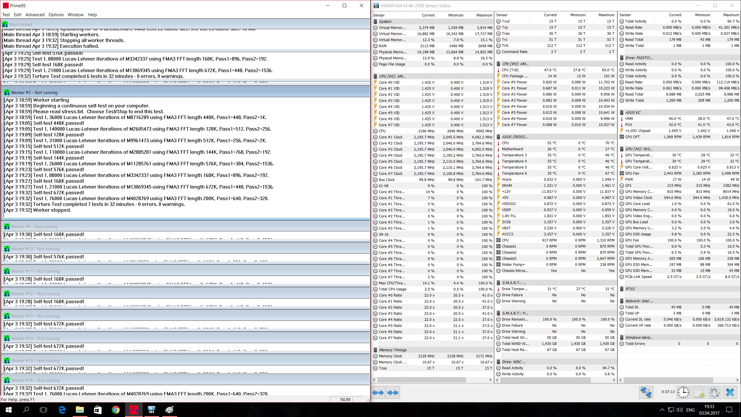 Ну и стоит вспомнить про +20гр на Х процессорах (на 1600х я указал с уже -20гр, там два параметра в HWinfo показывает уже). Считаю, что кулера вполне хватит для повседневного использования.