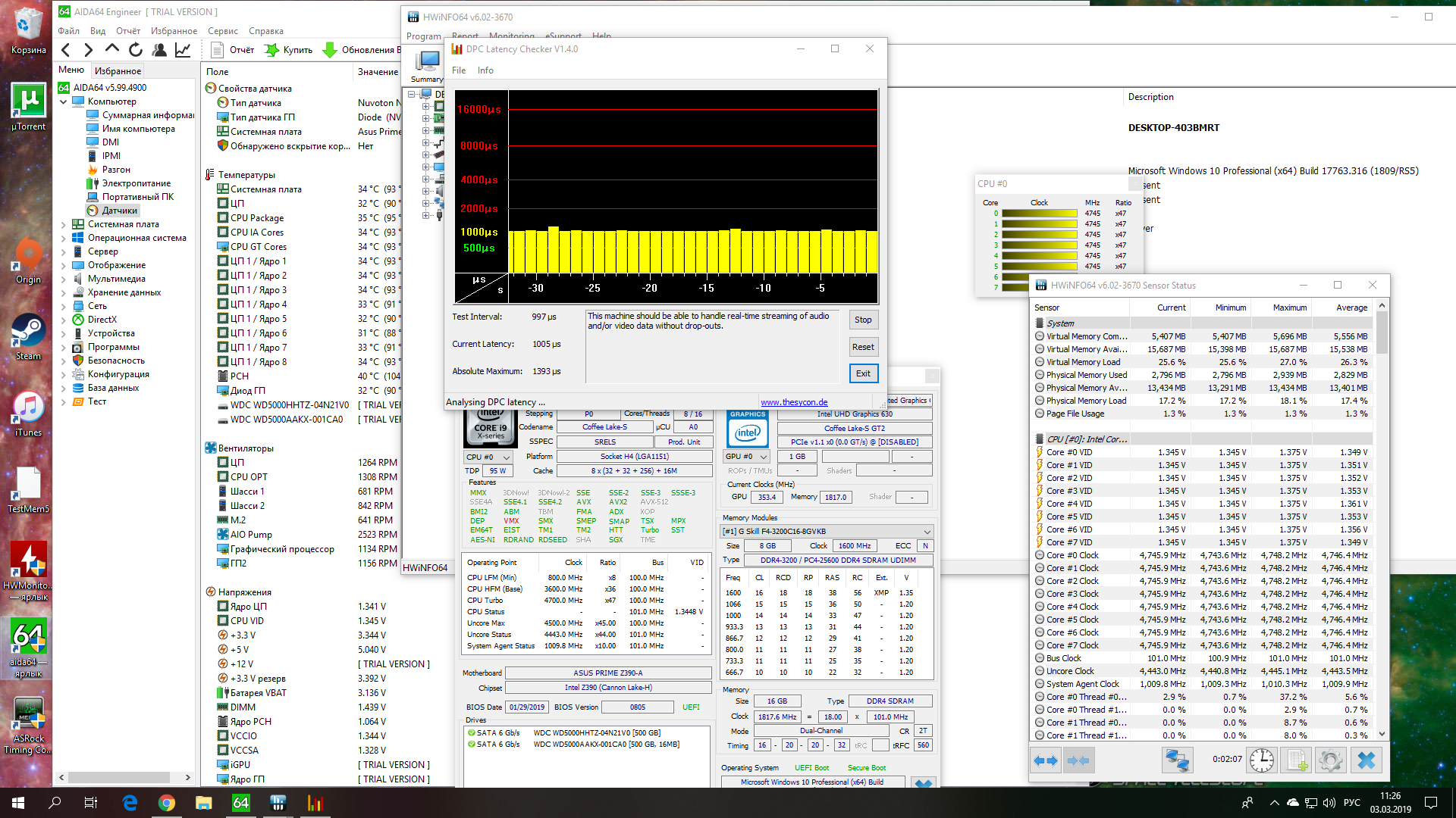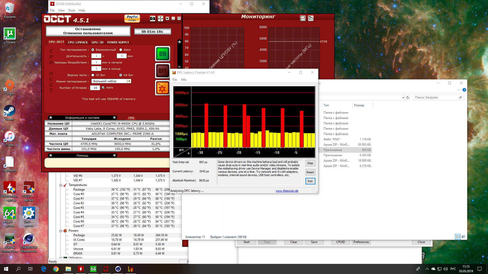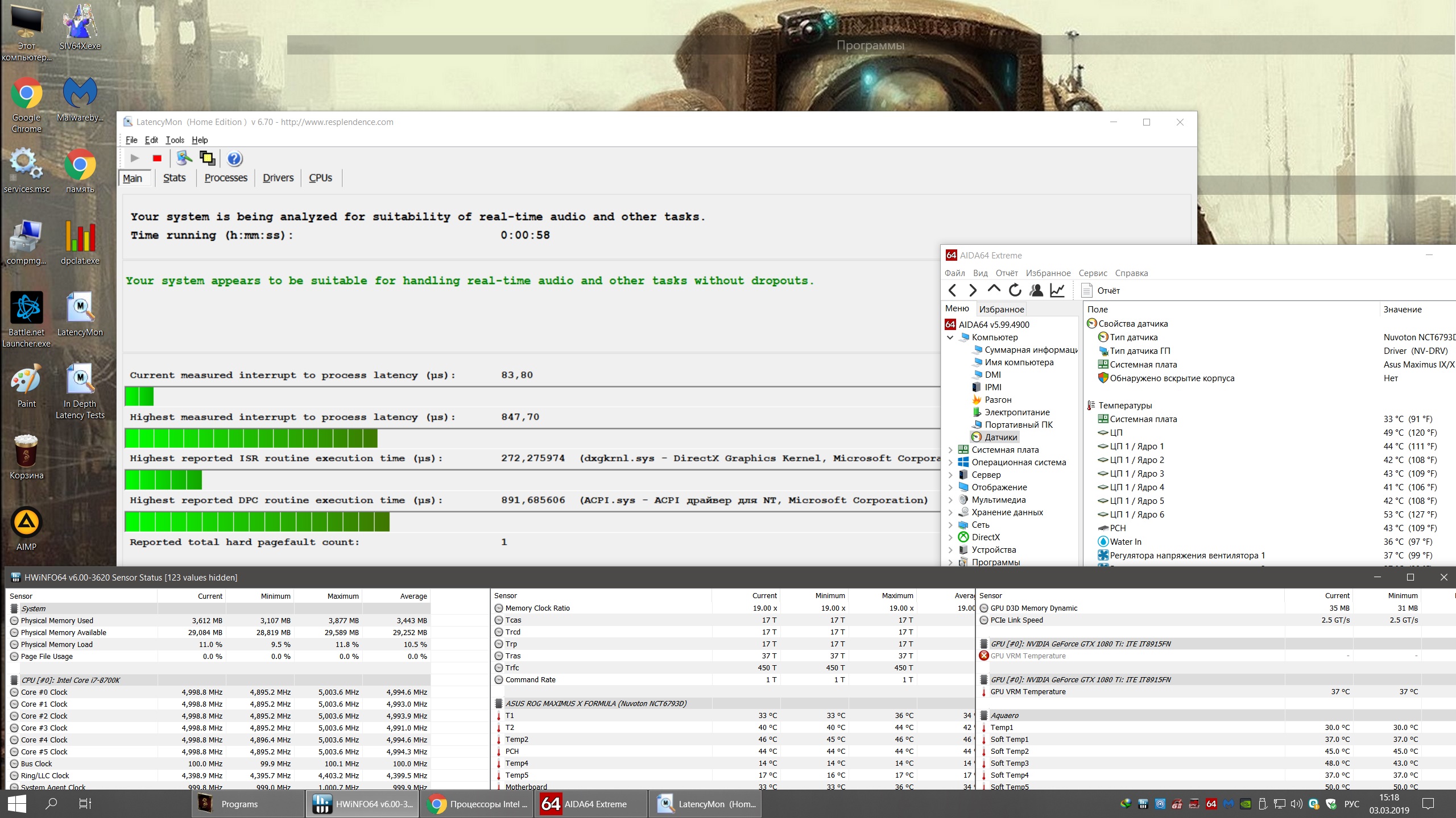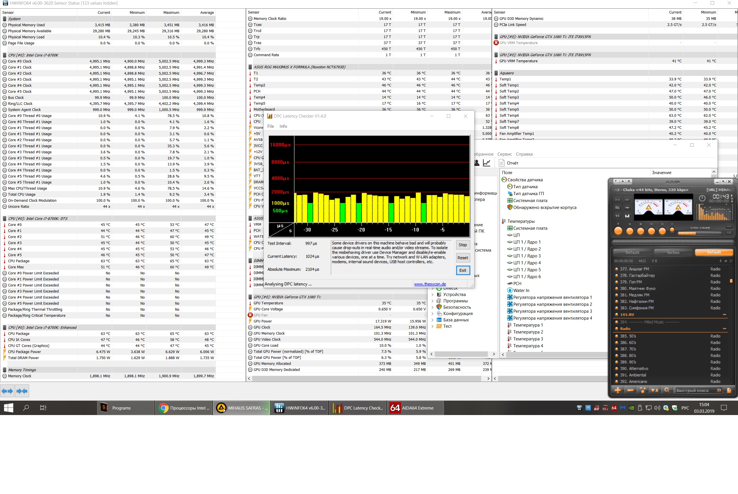 Запусти DPC Latency Checker при открытых HWInfo и Aida64 и пришли скриншот