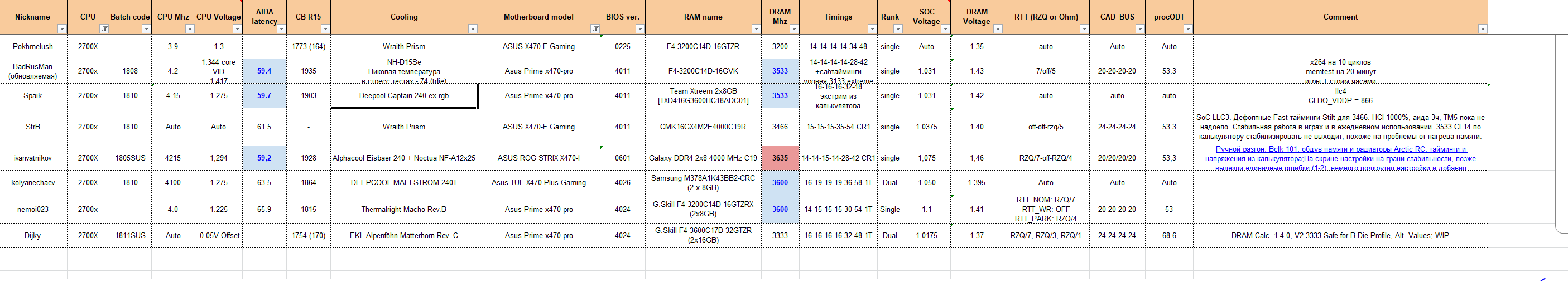 - Гонится ли лучше ОЗУ на ZEN+? - Нет, контроллер памяти идентичен прошлому поколению, даже имеет идентичные прошивки. Единственно улучшение - более низкая потребность в SOC voltage. Статистика разгона памяти : 3400 МГц - 12,5% образцов , 3466 МГц - 25,0% образцов ,3533 МГц - 62,5% образцов при условии использования памяти на чипах Samsung b-die.