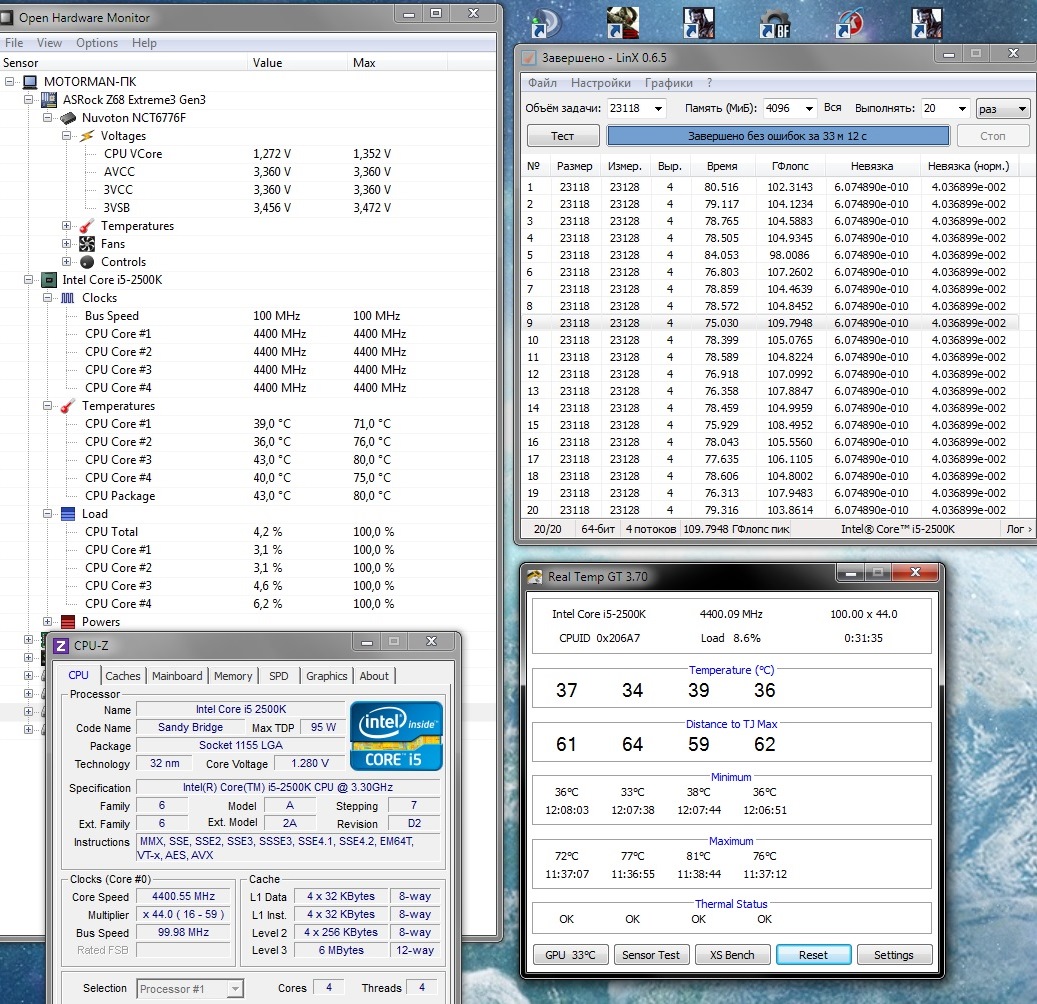 P.S. Почему такая разница в результатах LinX - 98 - 109 ГФлопс?