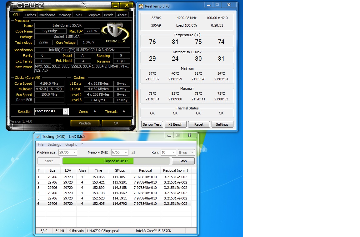 Краткие итоги: при тех же настройках, что были до процедуры (настройки 24/7 - 4700, 1.360v напряжение с небольшим запасом - чтобы батла 1 гарантированно не вылетала), получил -15 градусов в Интеловской грелке. НО, важно заметить, судя по уровню шума, вентиляторы не были раскручены и в половину от того, что было до операции. То есть, я бы даже сказал, что было "тихо".