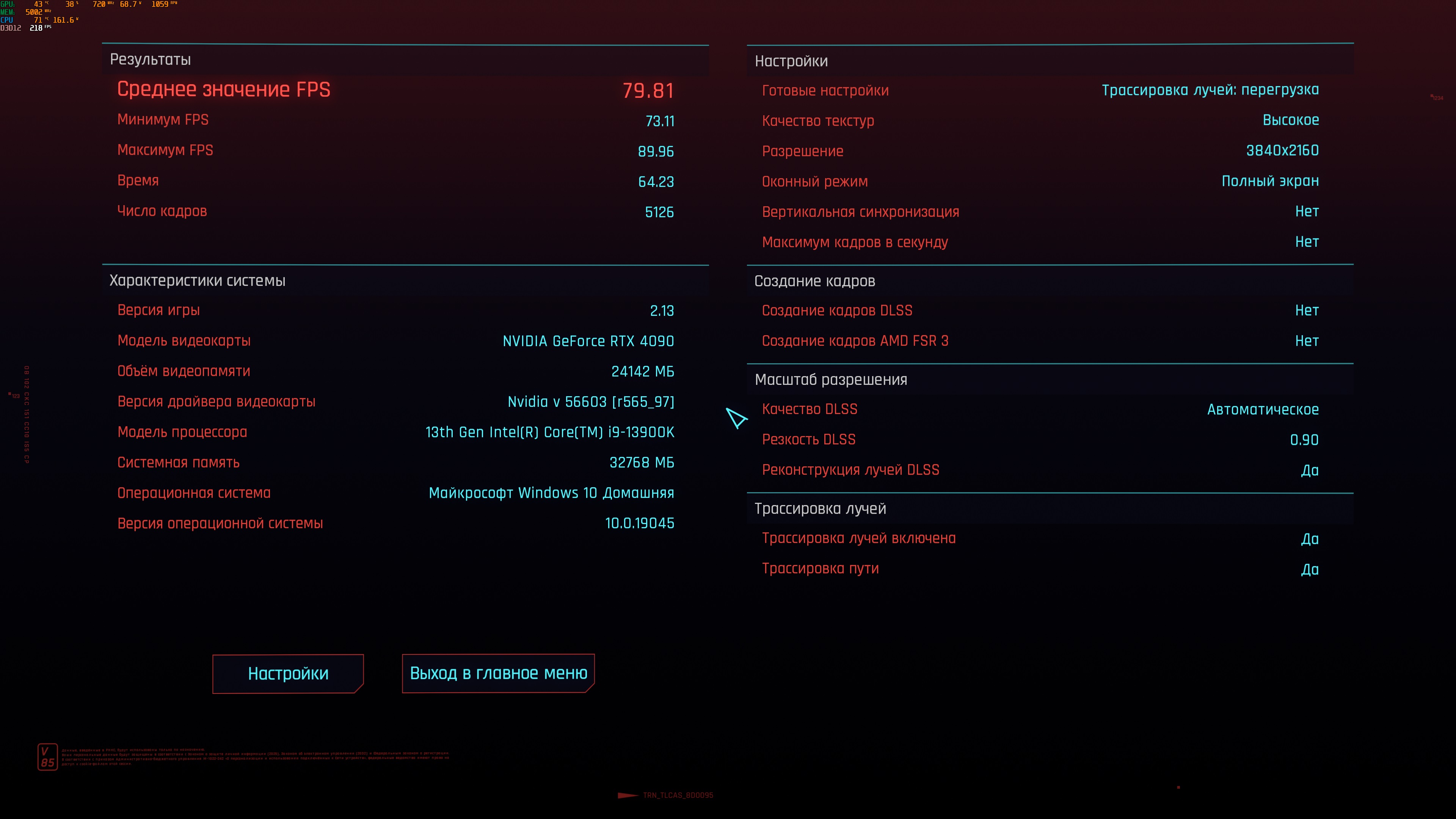 14900KS + Apex Encore Процессор в игре потребляет до 250W, на кой ему столько в игре) Биос последний 12B, сток, настроена память, фикс на 5700 частоте, оффсет -0.035. На название в оверлее внимания не обращайте, не подправил)
