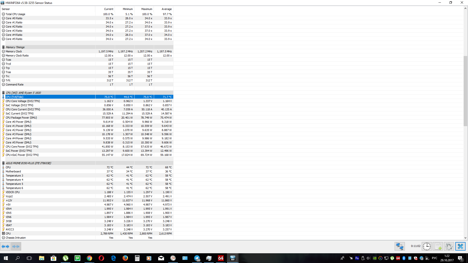 bander я предположил. Тогда почему на другом пк 65 и меньше? У вас тоже 1600й? Какие температуры у вас?