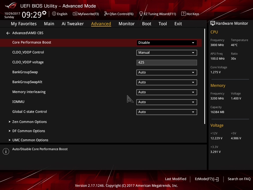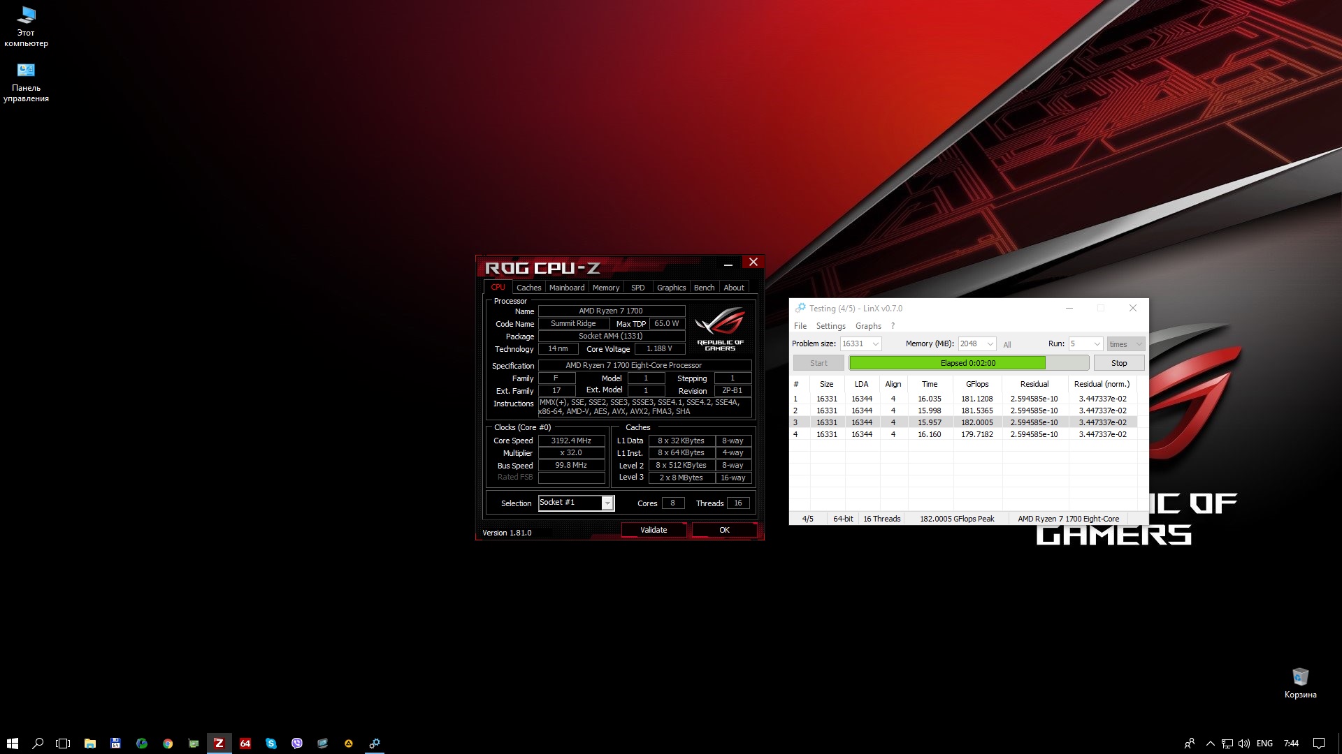 - Обычно поставляется в коробке с системой охлаждения Wraith Spire RGB (это круглая конструкция из целого куска алюминия с медной вставкой-испарительной камерой в основании и вентилятором с кольцом разноцветной подсветки, крепится к задней пластине разъёма AM4 четырьмя винтами). - Штатно имеет базовую частоту 3.0ГГц, частоту 3.2ГГц (технология Turbo Boost) при обычной многопоточной нагрузке (Blender n-cores render) и 3.75ГГц (технологии Precision Boost и XFR) при однопоточной нагрузке (Cinebench R15 single core). - Штатное напряжение питания 1.1875В. Может возрастать до 1.3В на отдельных ядрах во время работы Precision Boost и XFR. - Очень энергоэффективный, требования к СО (TDP) - всего 65W. Энергопотребление порядка 10Вт в простое и 85Вт в обычной многопоточной нагрузке (Blender n-cores render).