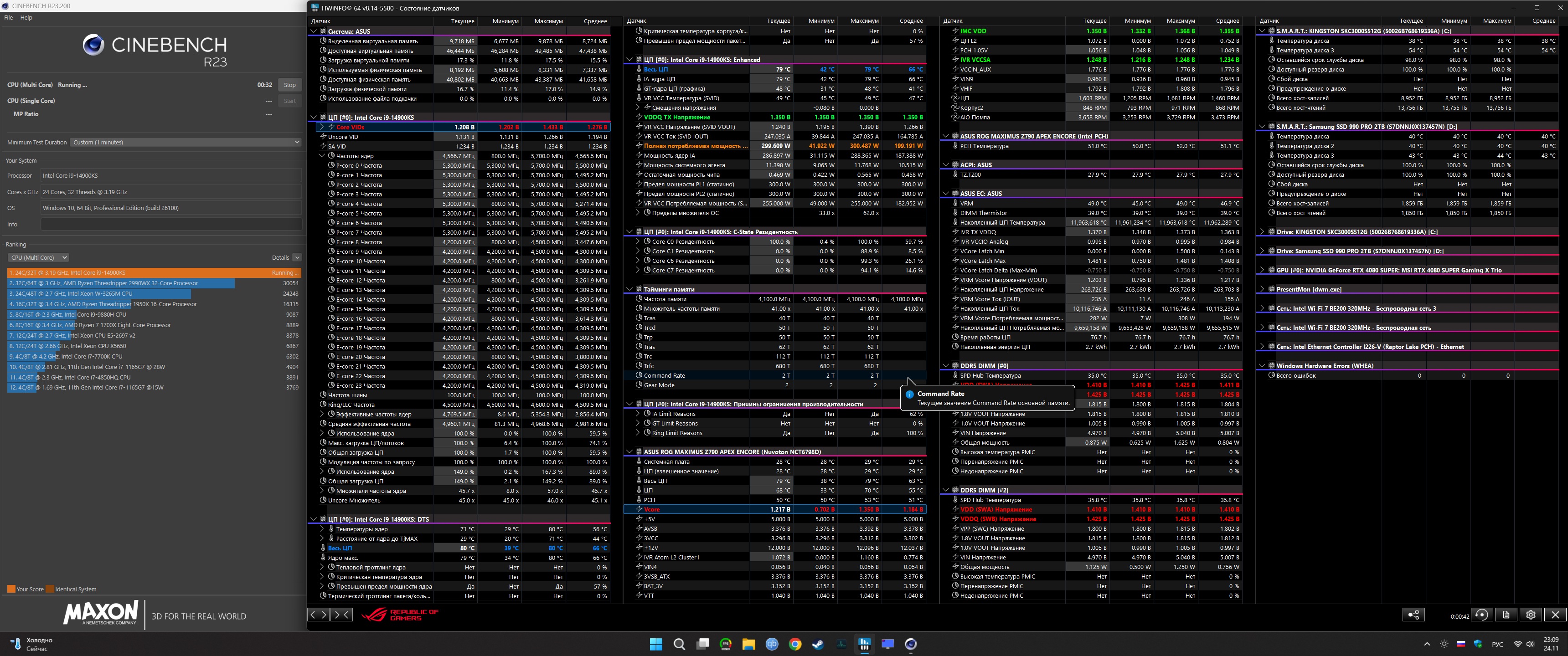 Hermes_Conrad У Вас первый попавшийся 13900KS или отборник? Какие напряжения, для 5600-700-800-900?