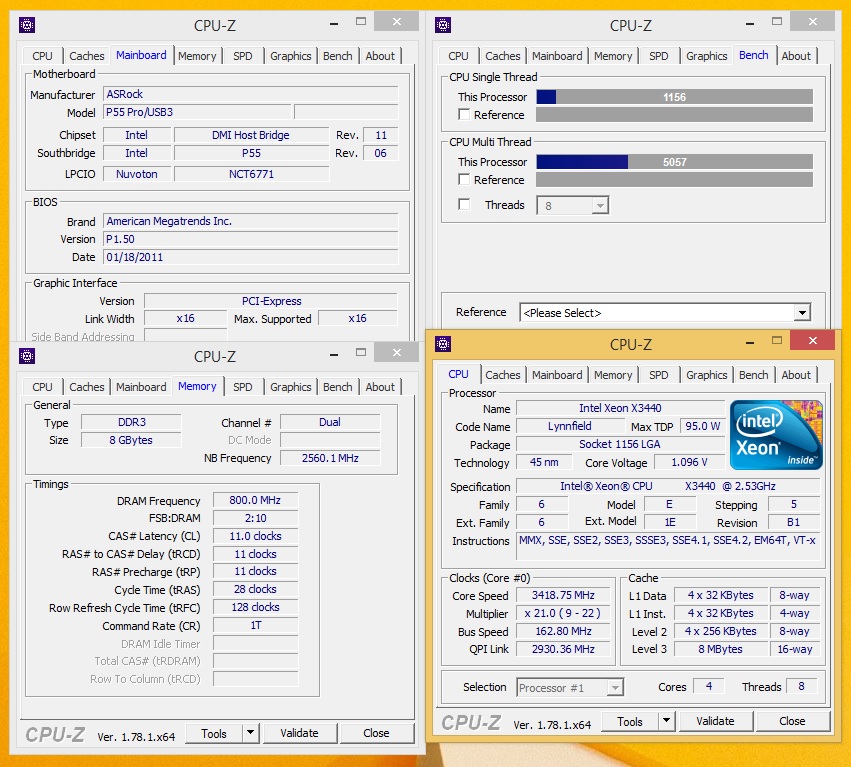 отпишусь тут для статистики. Есть ASRock P55 Pro/USB 3.0 + Xeon X3440 Разогнал по шине до 163 на низком вольтаже 1,187, но, видимо, под крышкой совсем засохшее УГ, которое надо менять, а скальпировать пока не на чем, поэтому основное ограничение - температура.