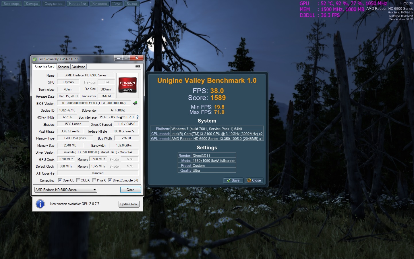 Добавлено спустя 10 минут 40 секунд: у мну HD6970 на 1050/1500 в "зелёном" valley 1.0 1650х1080 набирала 1600 птичек, в тоже самое время разогнанная GTX 660 столько же