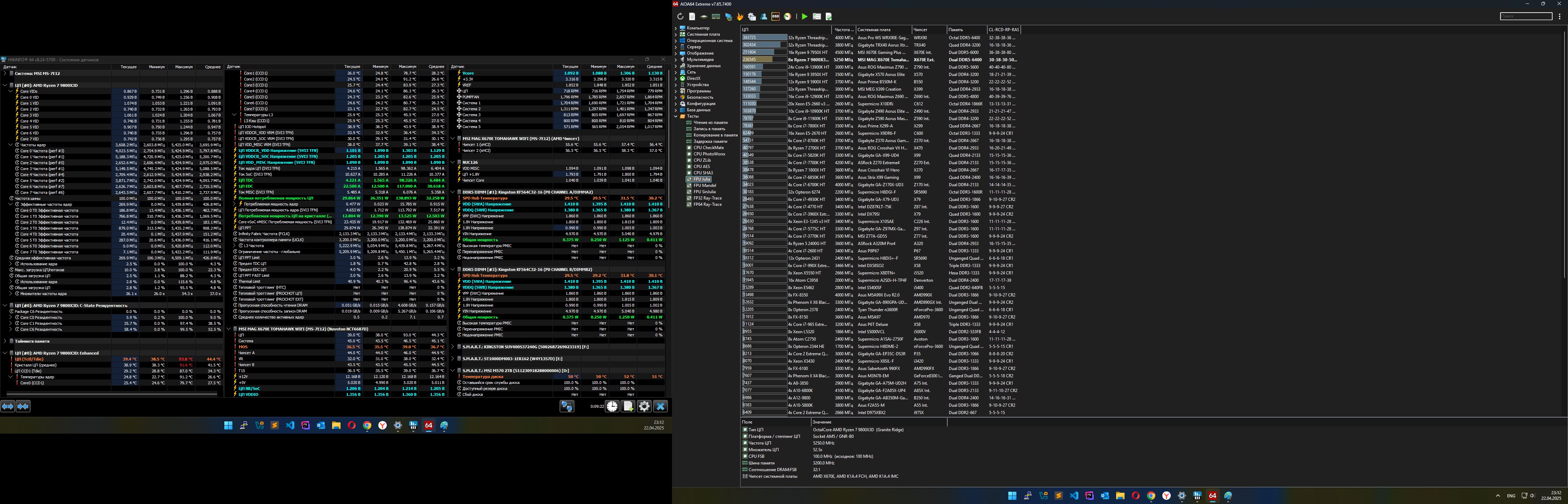 Экземпляр средненький - ОЗУ 6400 1:1 при vSoC 1.2 IF=2133, CO -15 all cores +200MHz При vSoC=1.3v фабрика выше 2133 троттлит, потому 6600/2200 даже не пробовал. При vSoC=1.2v фабрика едет 2200, но смысла нет - в бенчах кп2077 и метро синхронная 2133 чуть