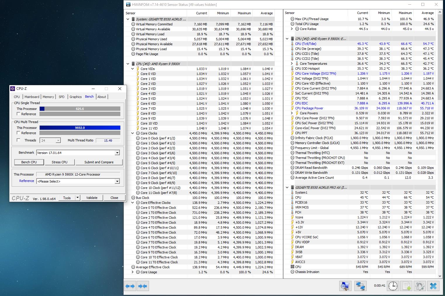 Я бы еще попробовал переустановить HWInfo, вернее удалить приложение вместе с хвостами в реестре, и скачать свежую релизную portable версию (7.14-4610). У меня так выглядит сенсор-панель в singlecore бенче: