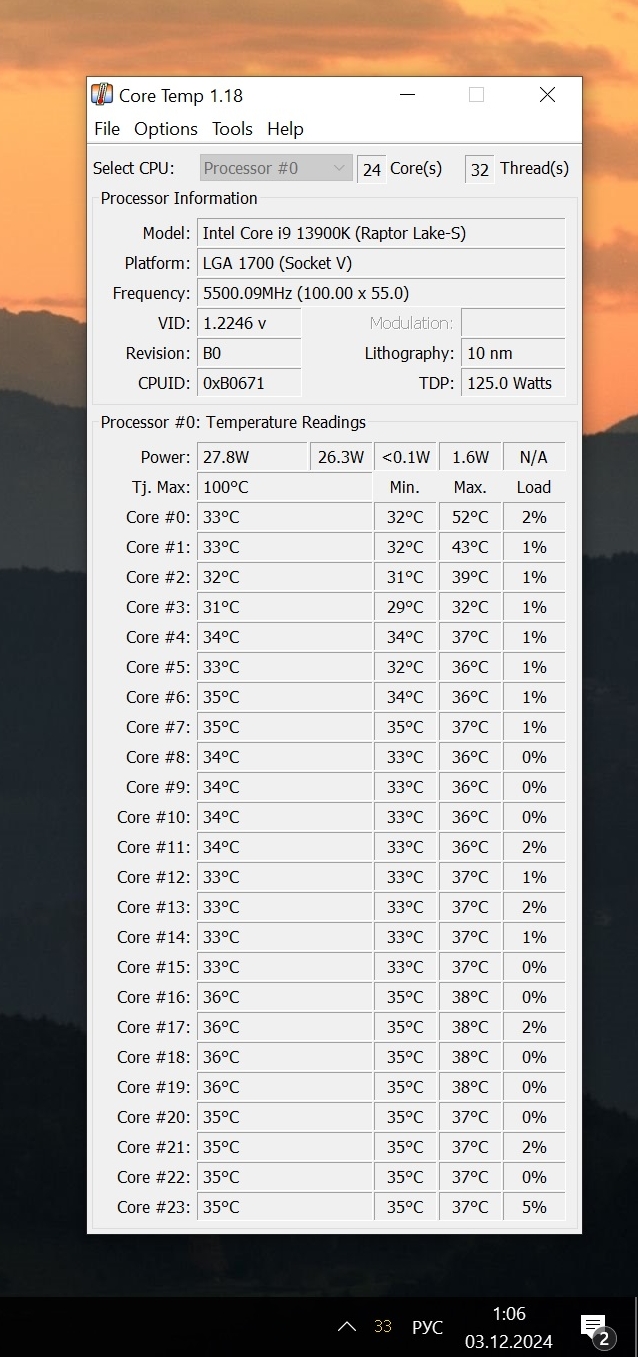 Добавлено спустя 4 минуты 24 секунды: Нет, у меня не так... Bergauf , 29 в простое минимум... 12900К, был чётко комнатной температуры... А этот, +9-10 к комнатной...