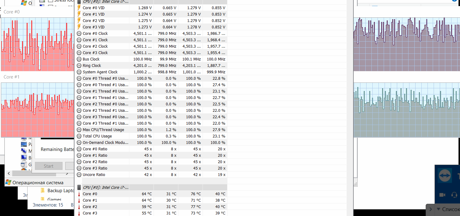 Вот, я потестил 25 минут проц не самым тяжелым тестом стабильности в АИДЕ, открытый корпус - подува нет, кулер TR Le Grand Macho - без вентилятора, в пассивном режиме. Но разбег при падении равномерный, а под нагрузкой иногда сильные провалы, но при этом вроде не сильно греется для пассивного варианта.