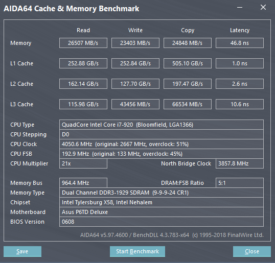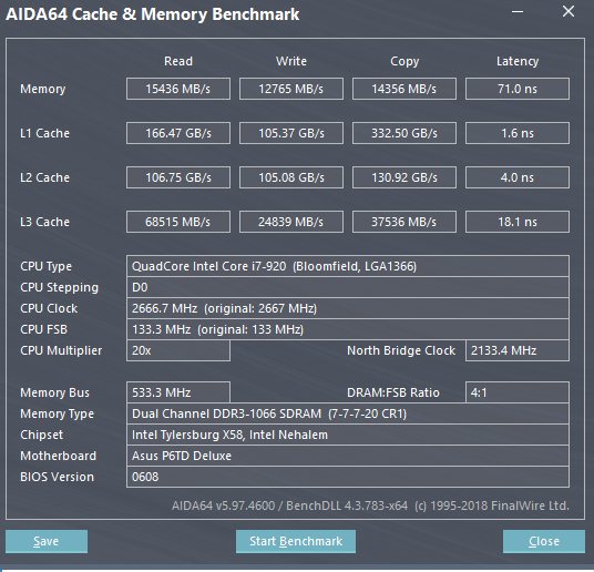 Mixrus А, у вас же двухпроцовая... Тогда никак: в теории можно и до 70 ужать на 6 каналах, но если тайминги нет возможности в BIOS задать - я даже не знаю, как софтово их изменить на 1366, да еще и для двухпроцессорной на i5520, CL точно не получится, а от него больше всего зависит. Хотя результаты любопытные - я тут тестил двухканал на профильном железе, чтоб сравнить с 771, получил такой результат: