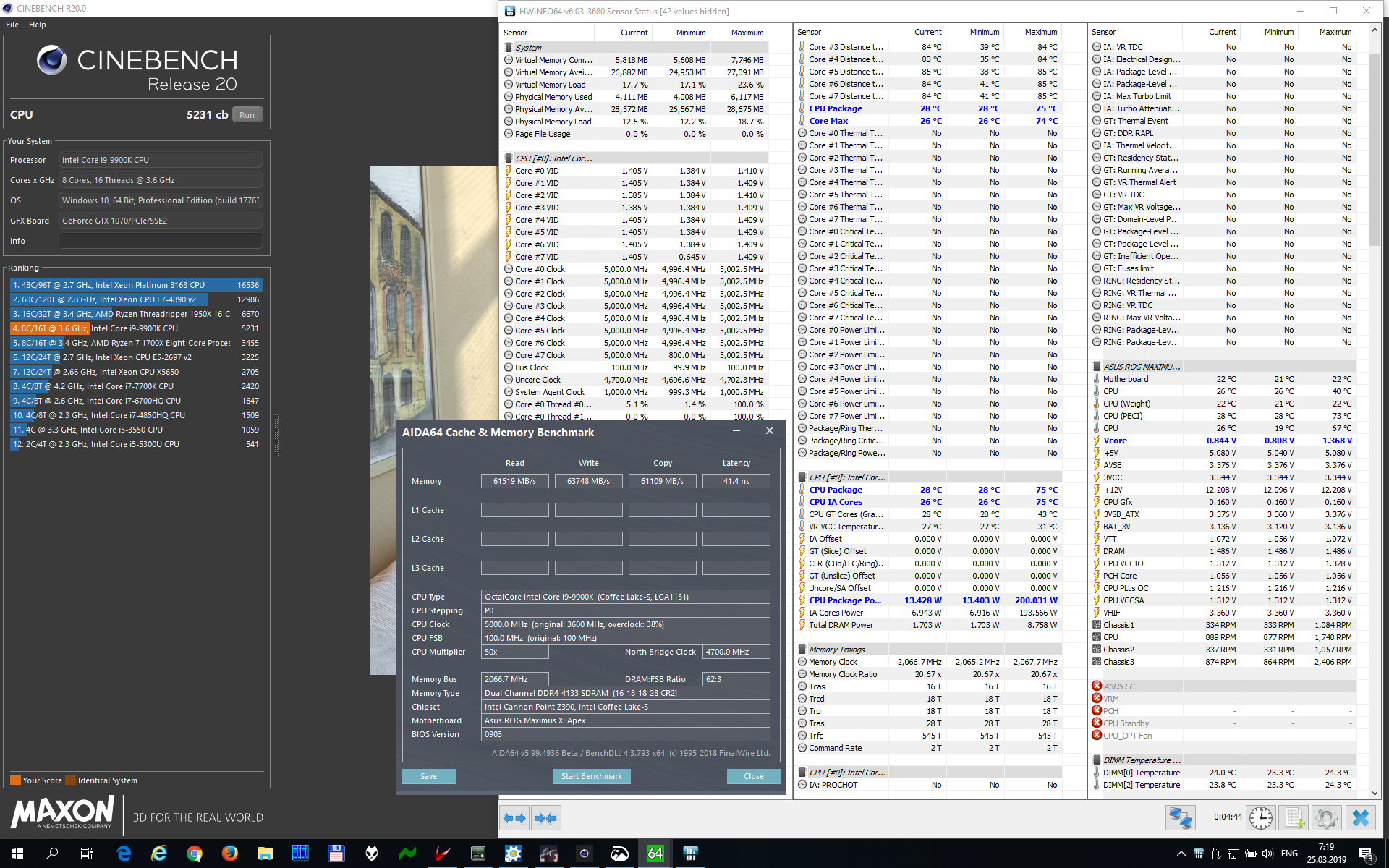 Gaiver-99 чё это 3200 то?) 3600 16-18-18-38. У меня же не 9900к, поэтому и флопсов меньше. Io/sa 1.15в А по температуре наверное охлад разный, не?) У меня Залман 10х перформа)