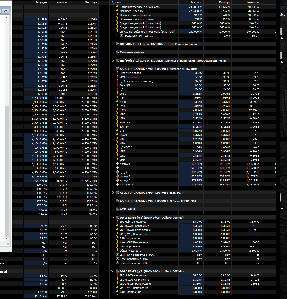А судя по скрину, для 5300 в нагрузке 1.26 В как-то многовато. Я бы еще потестировал оффсетом, ну или повысил частоту до 5500 хотя бы и посмотрел. Если понижать напругу - то уже офсетом в -. Так как АС и так 0.01, ниже некуда. Я 13700 когда настраивал, то у меня получилось 5600/4500/5000 при 1.285, в нагрузке это было 1.255 +-. проц вроде был удачный, но 1.26 на 5300 - это прям чересчур.
