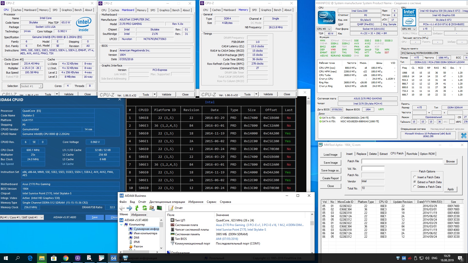 железко такое: мать Asus Z170 Pro Gaming проц I7-6400t QH8F A0 506e0 microcode patch 17