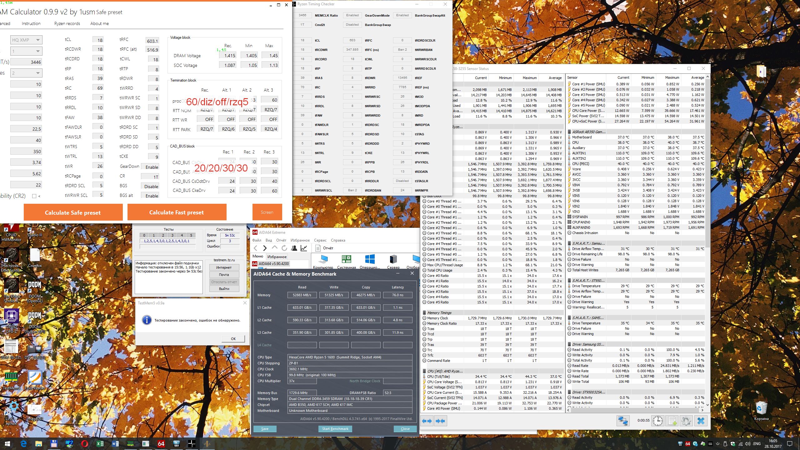 Но тут возник такой вопрос: на частоте 3200 чтения и запись в аиде были примерно равны, но уже на частоте 3333 появилась заметная разница. Это нормально? Или что-то нужно подправить. P.S. Огромное спасибо 1usmus за его калькулятор.