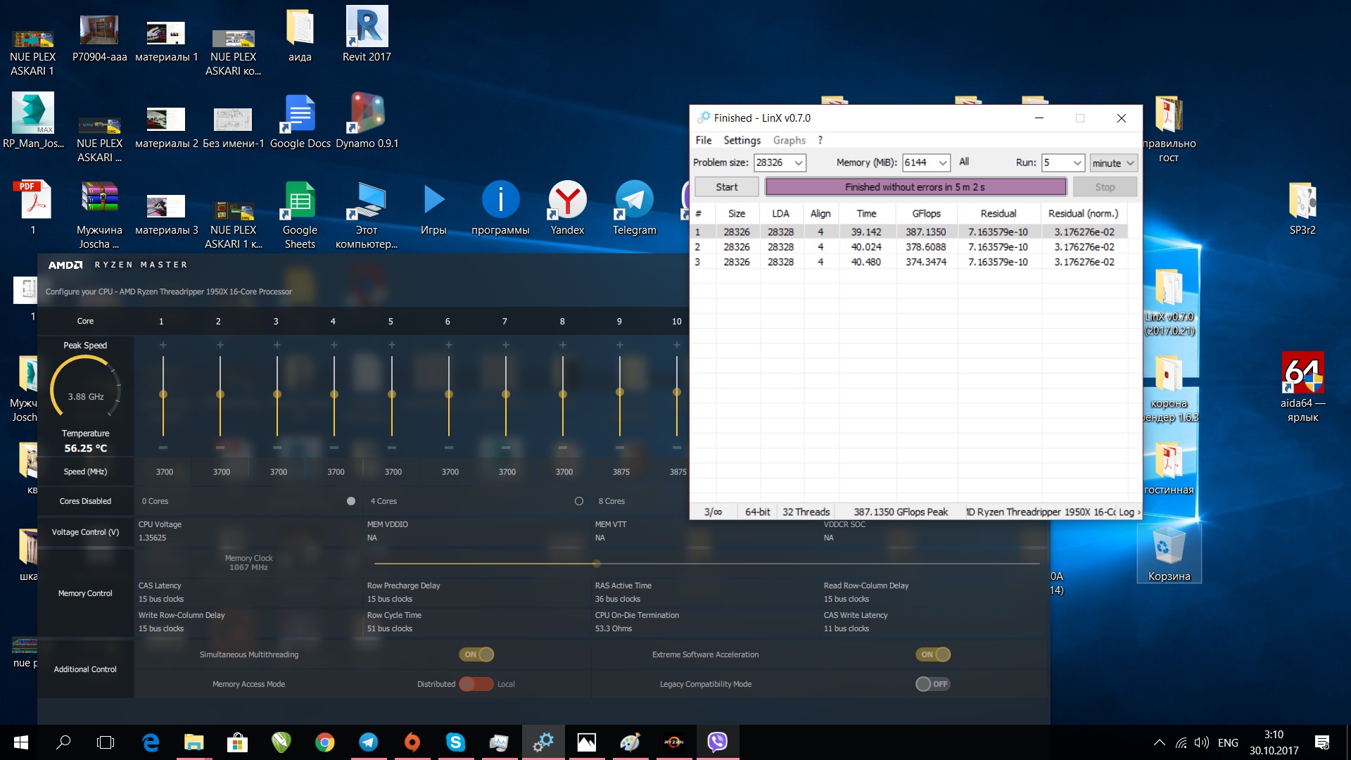 Добрый день нужна помощь Вопрос в следующем все по дефолту, новый виндовс и все биосы перепробывал, сам пк работает нормально, проходит прайм95 без ошибок 10 минут, осст - 10 минут без ошибок, сайн бенч и корона рендер 1.3 все проходит, вопрос с LinX проходит но выкидывает все числа в разнобой при условии если ставишь объем задачи меньше 2000, если ставить больше то все числа идут попорядку